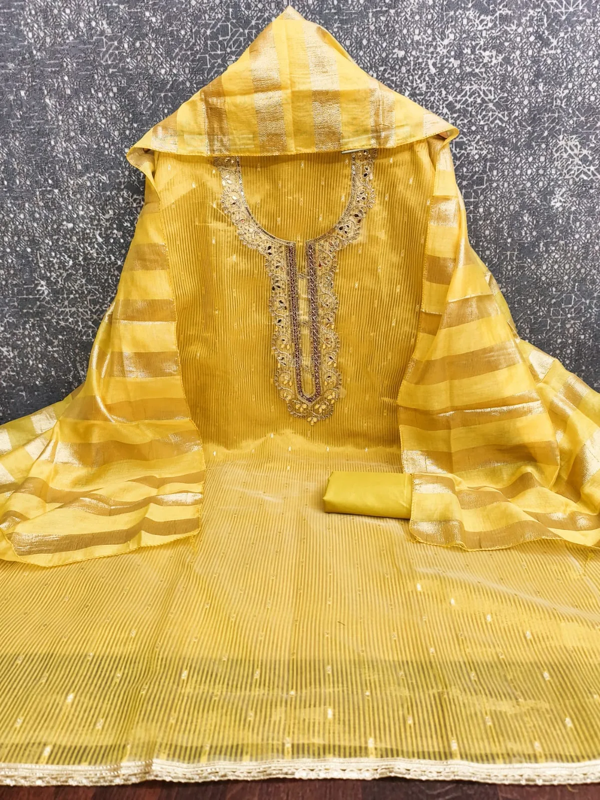 - Top Fabric: Lining Simmer Silk Booti Kodding Squance Work