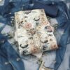 Blue Printed Blue Pure Cotton Dress Material Enhanced With Moti & Hand Embroidered Sequins