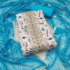 Blue Pure Cotton Dress Material With Digital Florals & Handcrafted Sequins Embroidery