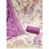 Product Name: Cream & Purple Floral Printed Pure Cotton Dress Material With Intricate Moti & Stones work
