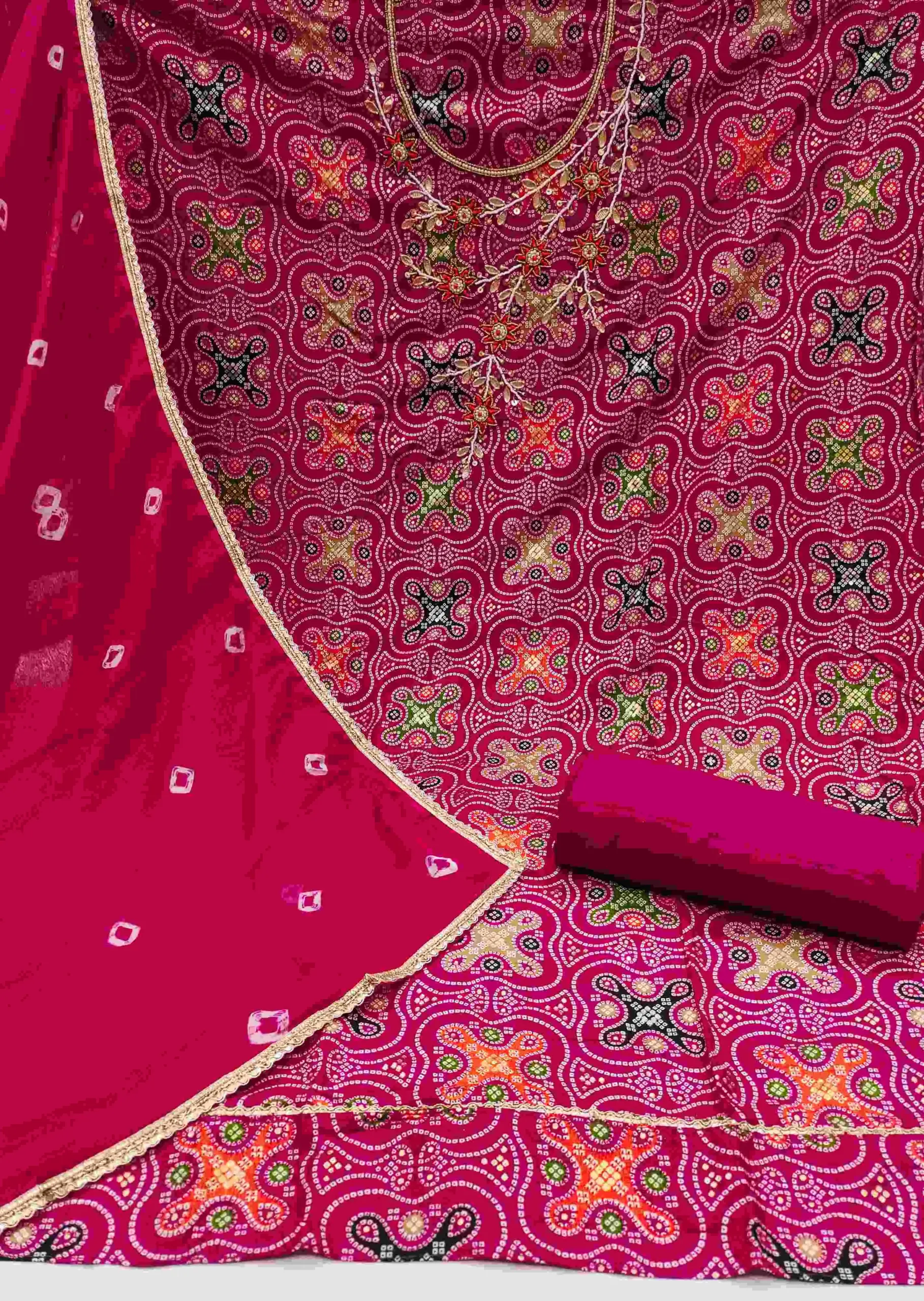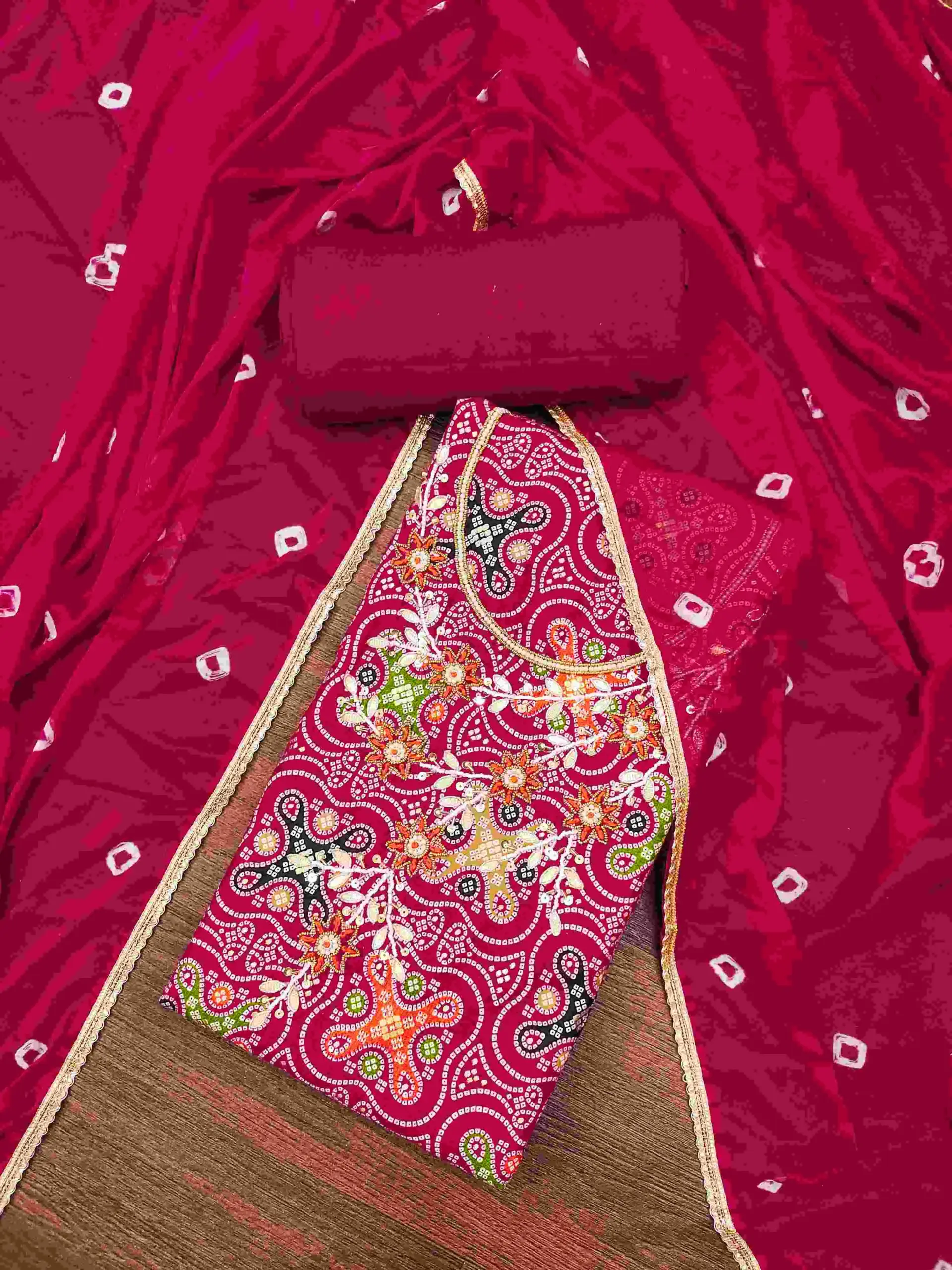 - Dupatta: Nazmin Bandhani Dupatta- 2.15 Meters