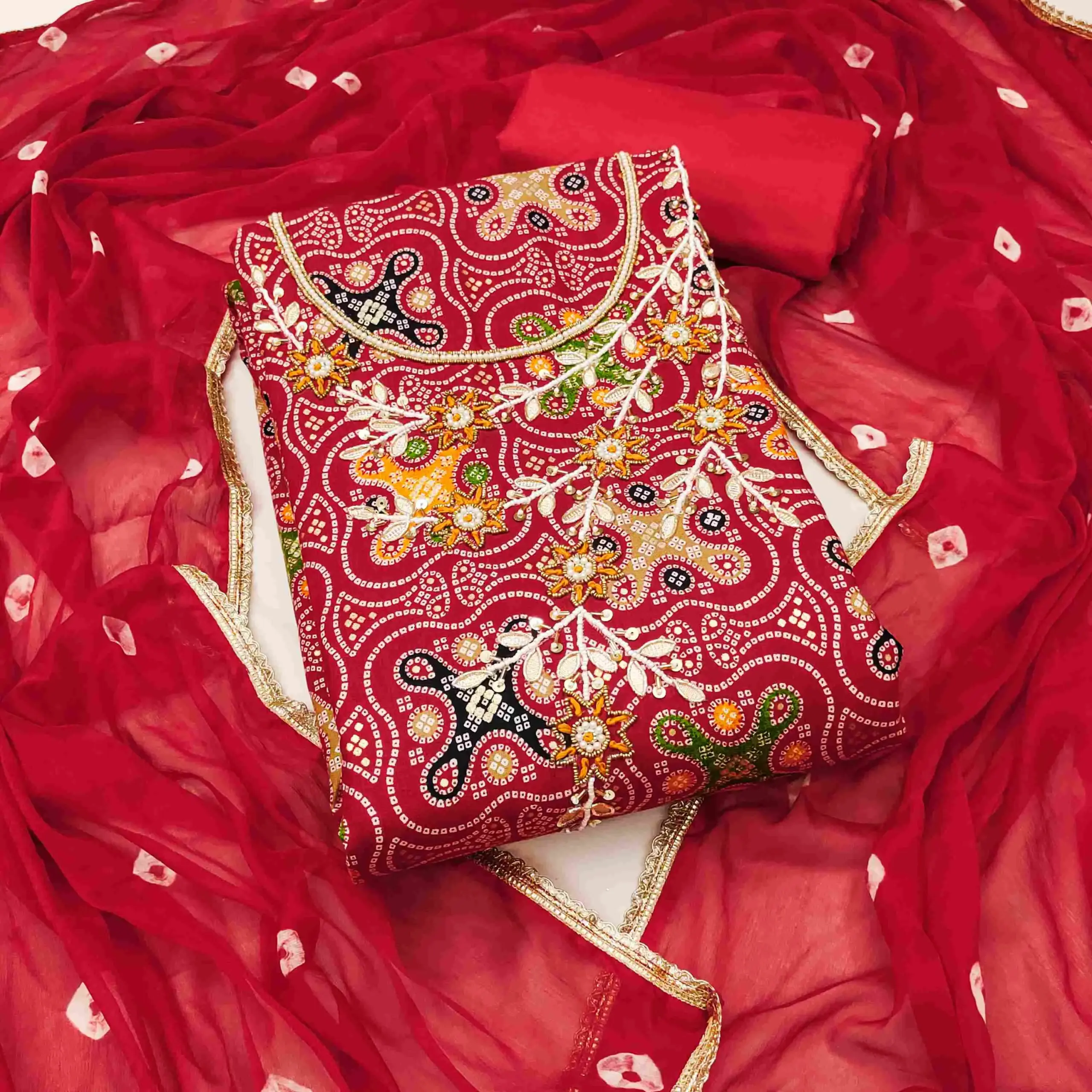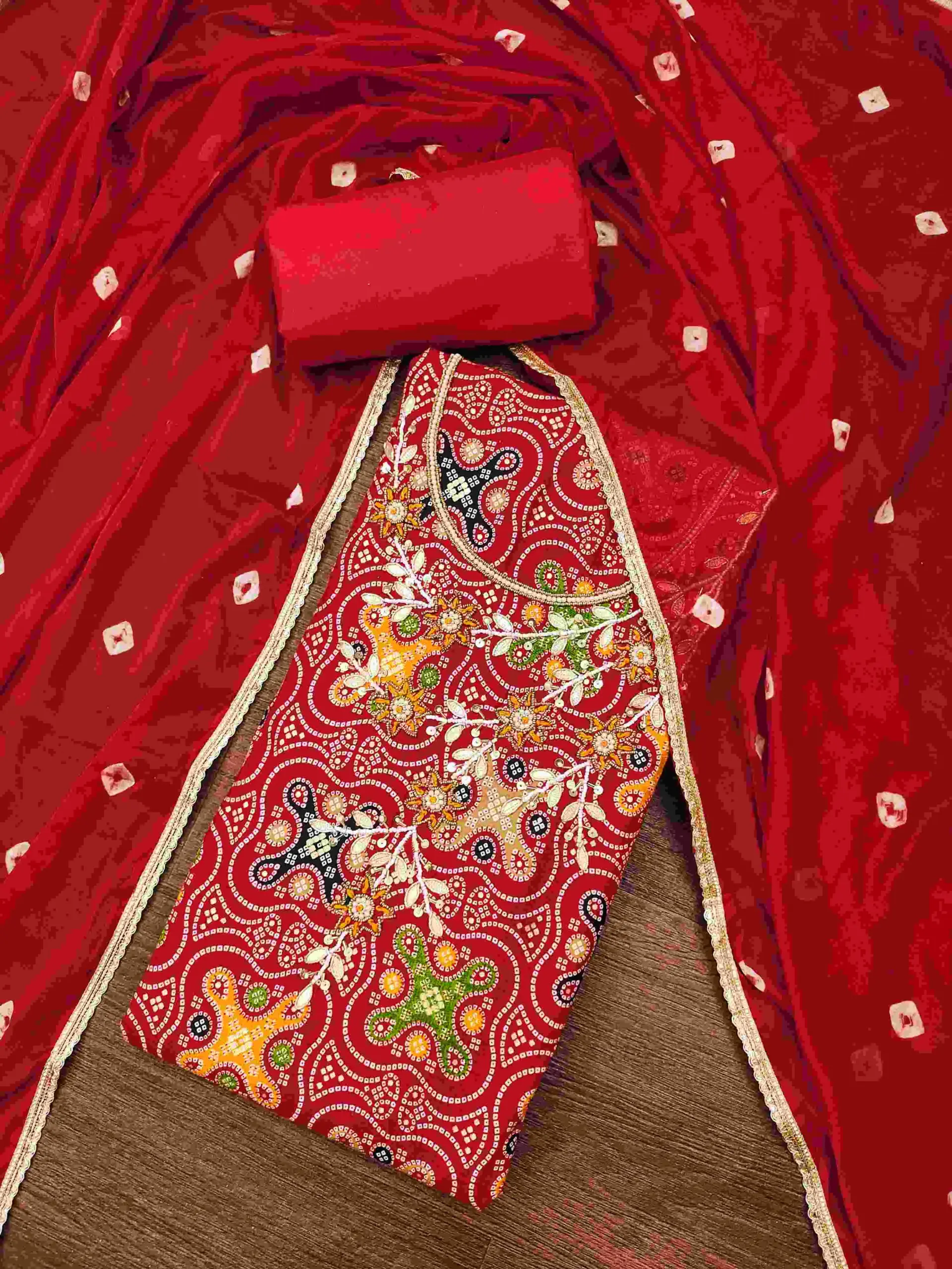 - Dupatta: Nazmin Bandhani Dupatta- 2.15 Meters