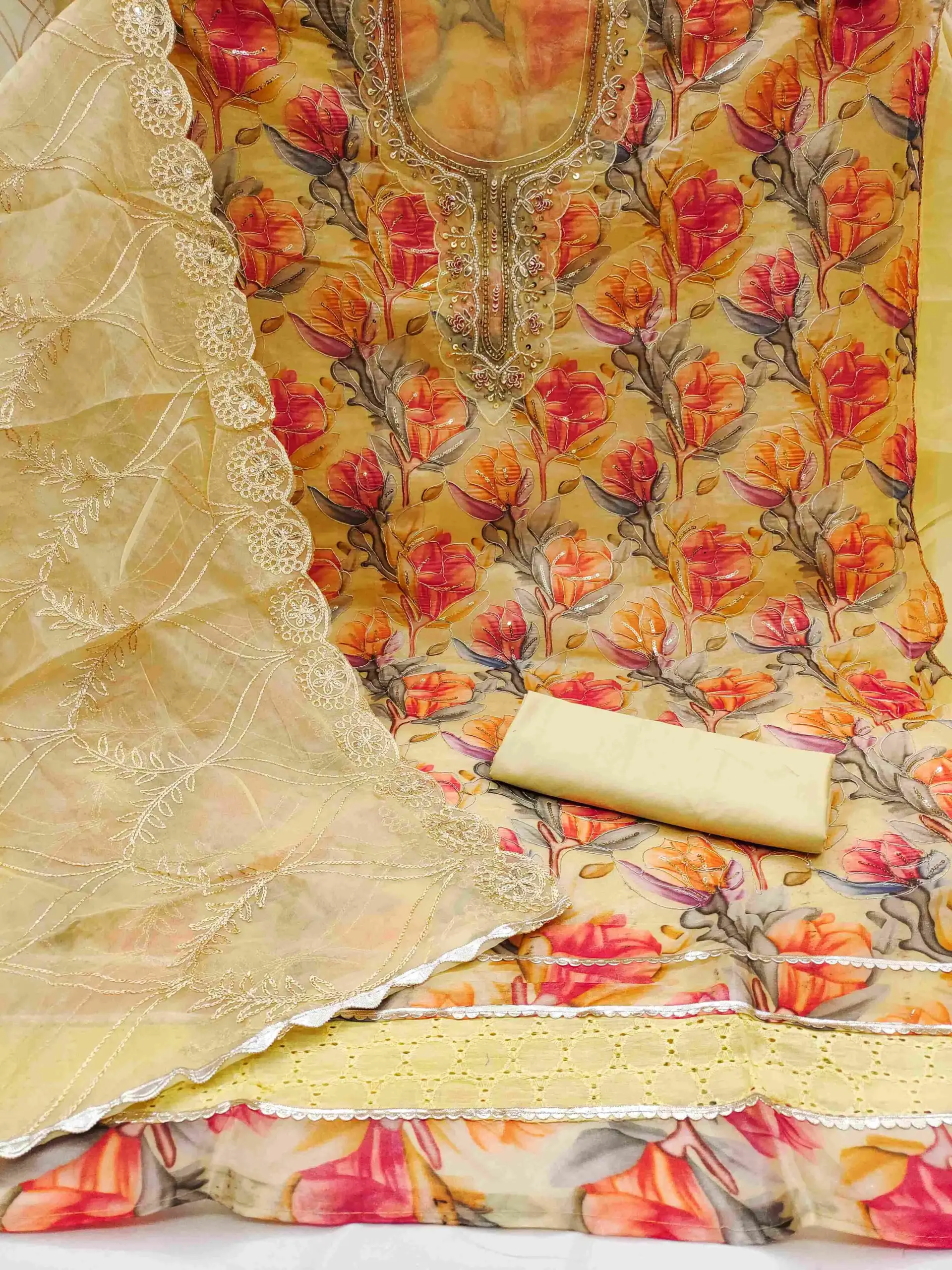 - Top: Organza Position Print With Handwork – 2.05 Meters