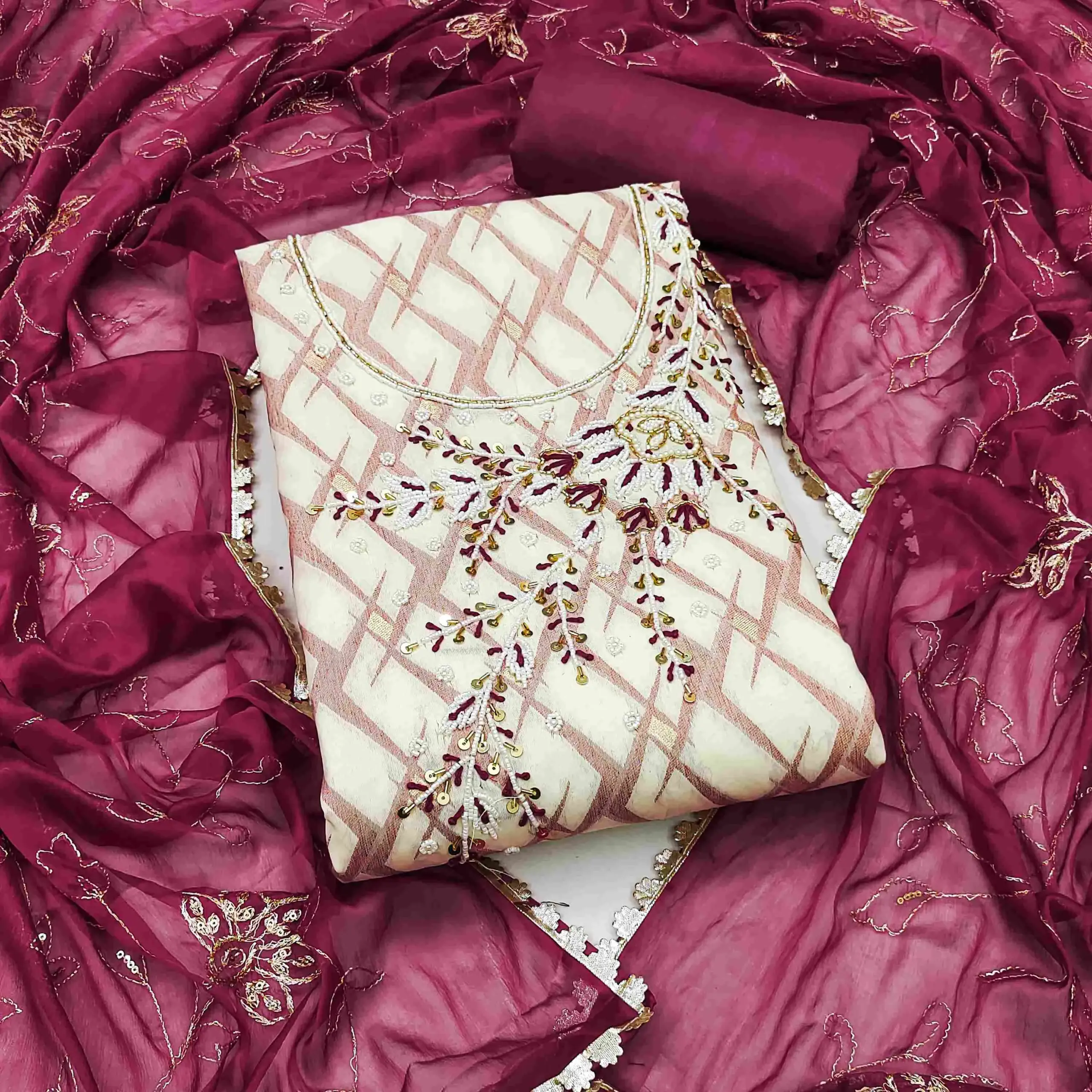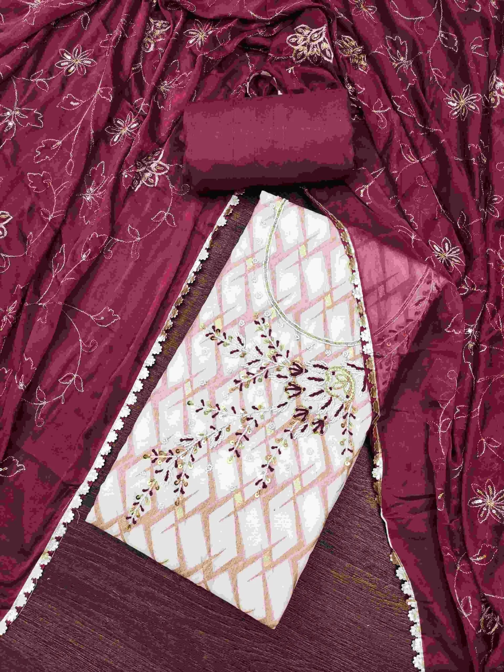 • Top: Modal Cotton Banarasi With Handwork – 2.05 Meters