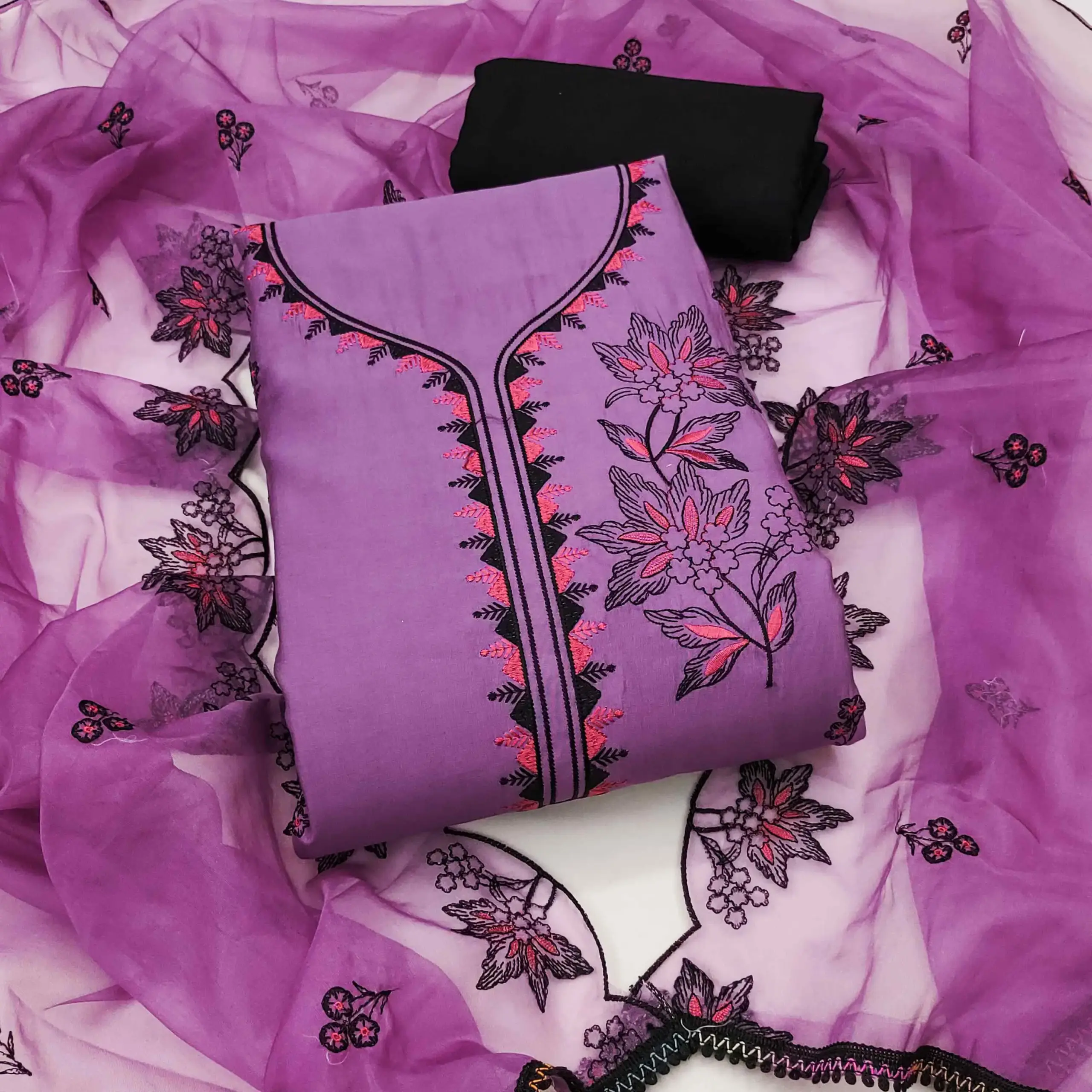 - Top: Pure Cotton Silk With Embroidery Work – 2.40 Meters