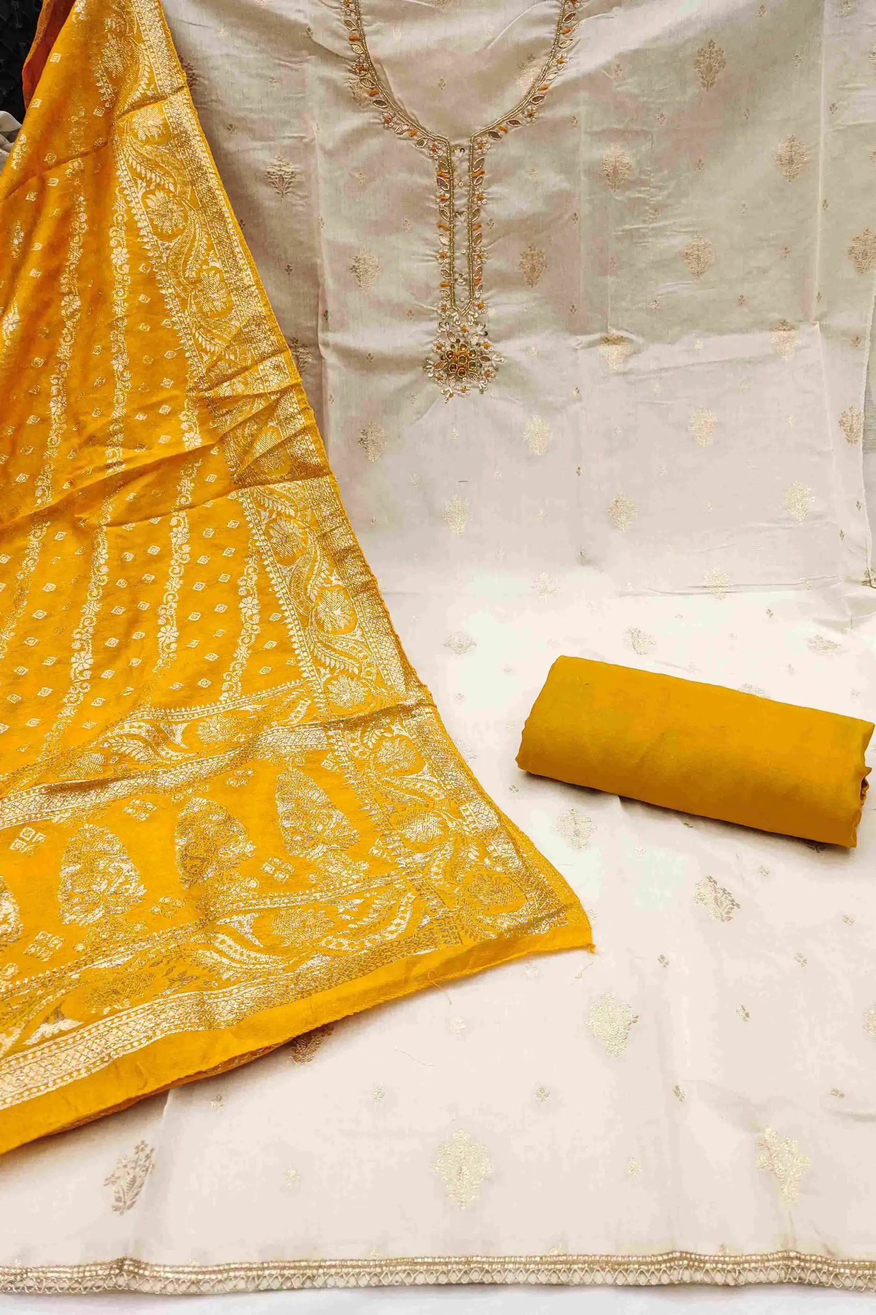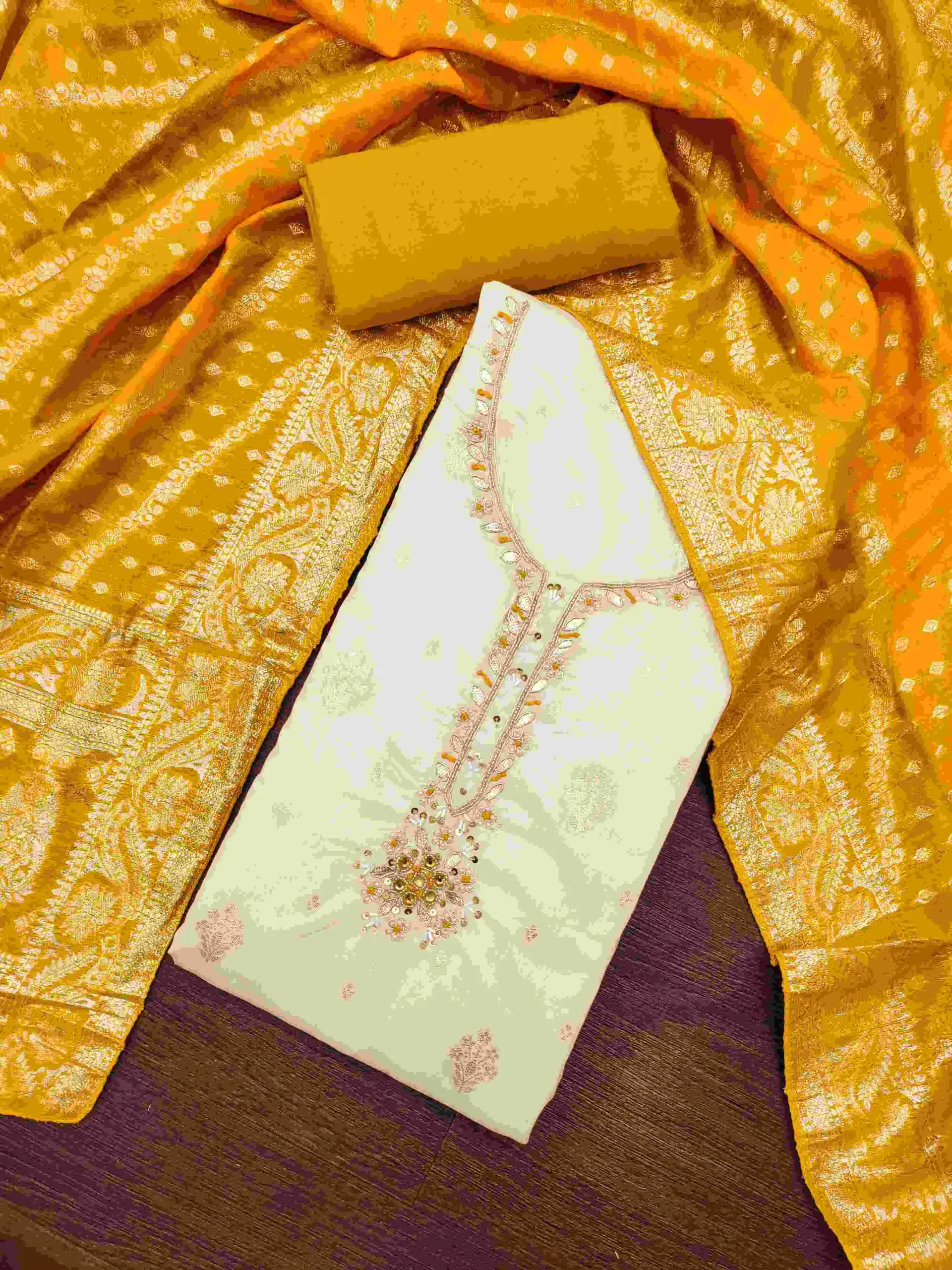 - Top: Banarasi Modal Cotton Silk Hand Work – 2.05 Meters