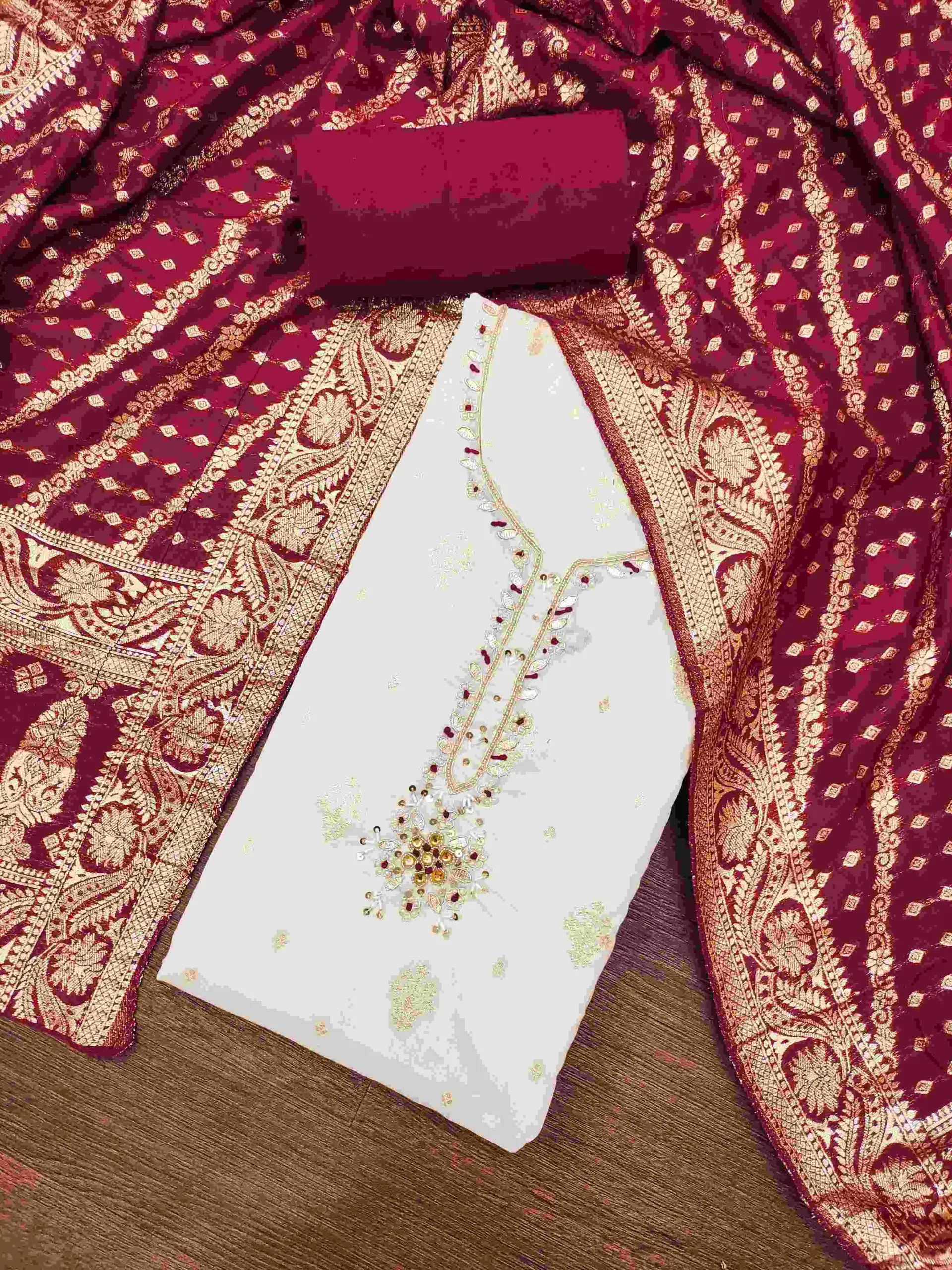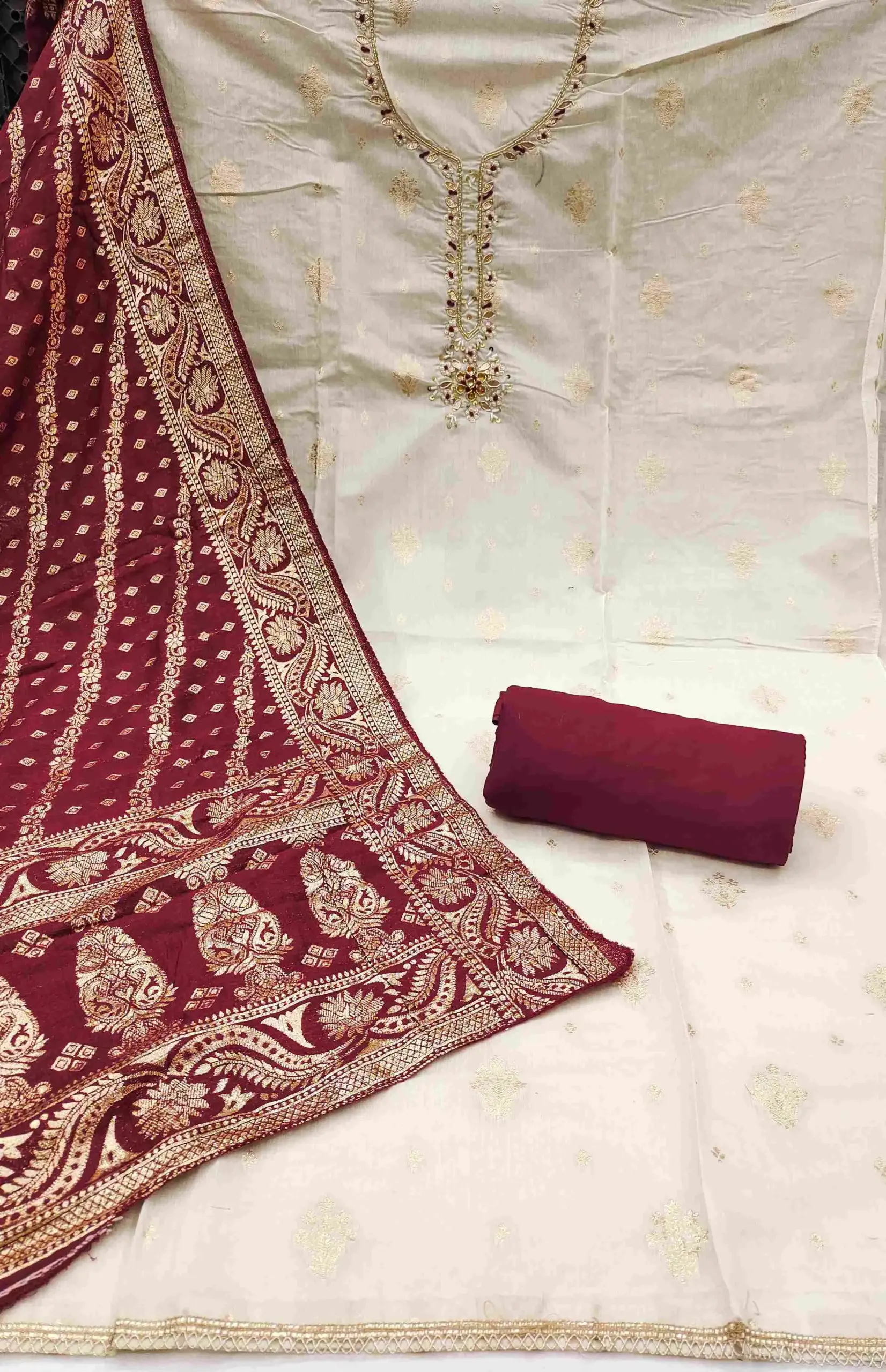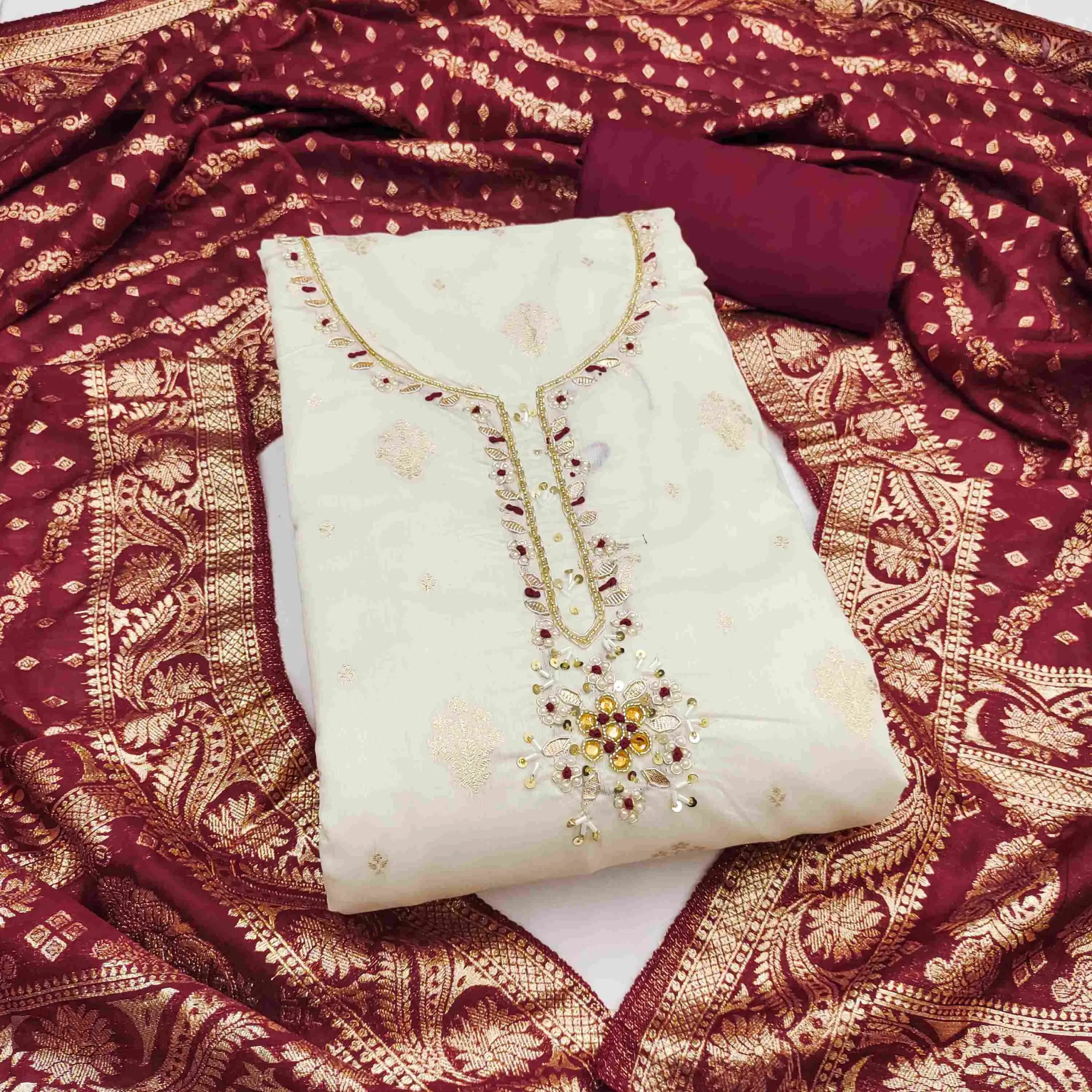- Top: Banarasi Modal Cotton Silk Hand Work – 2.05 Meters