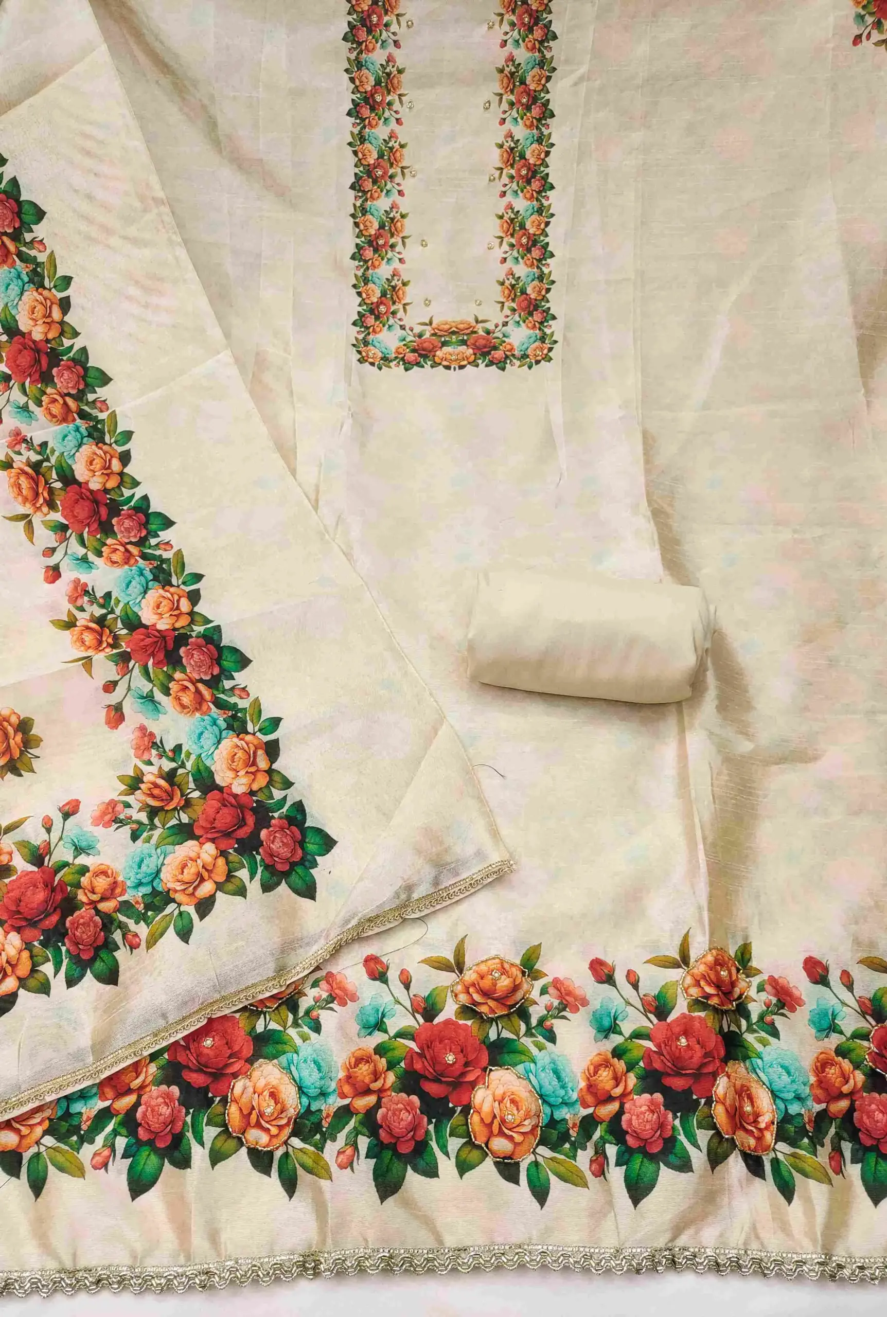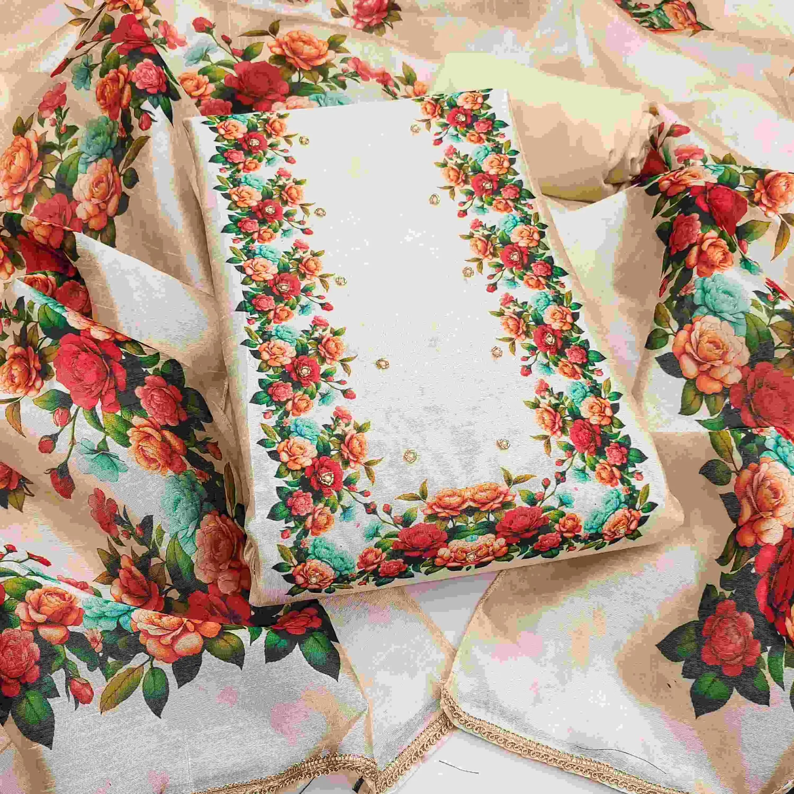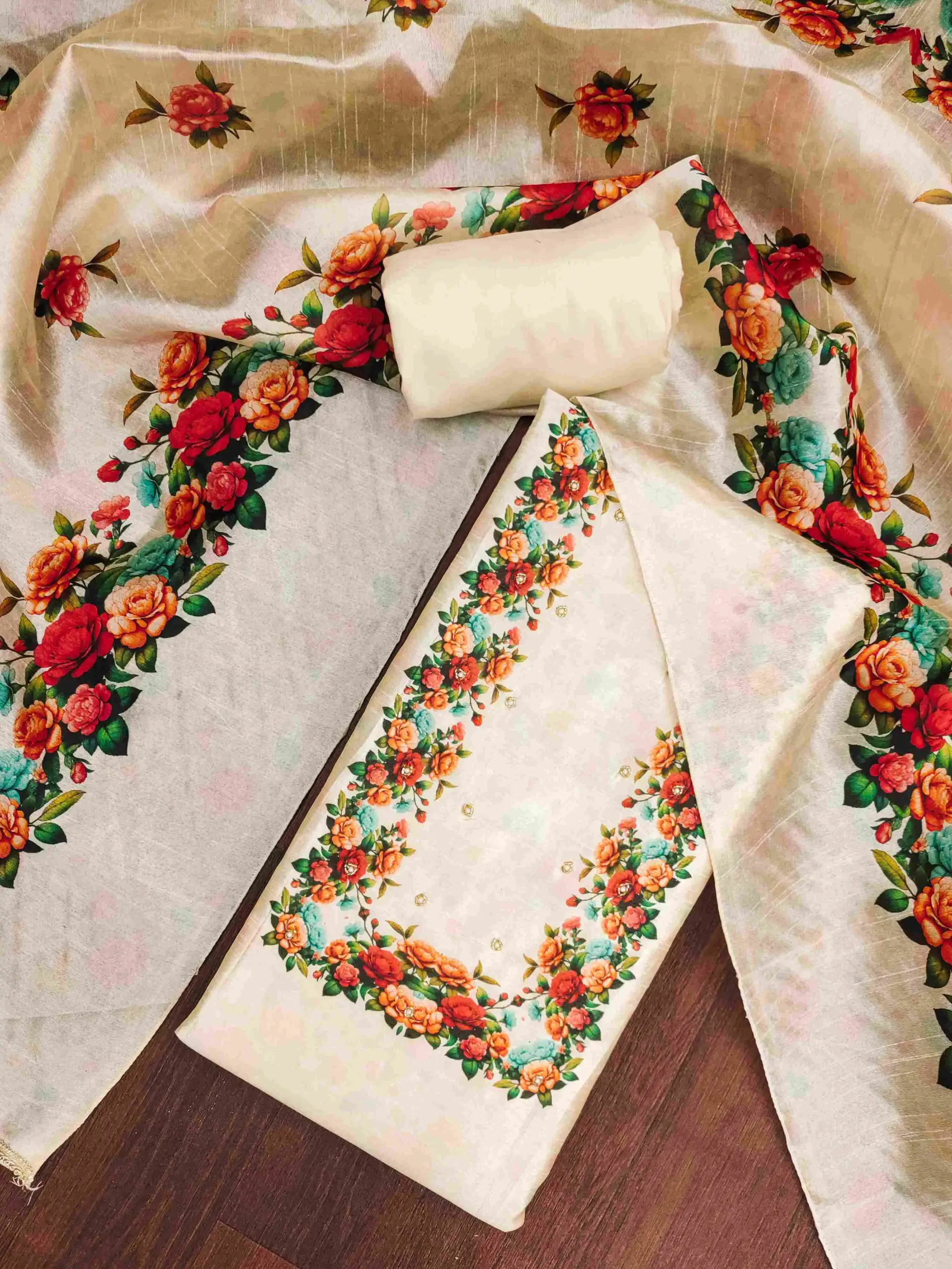 - Top: Jharna Silk Cotton Digital With Handwork – 2.5 Meters