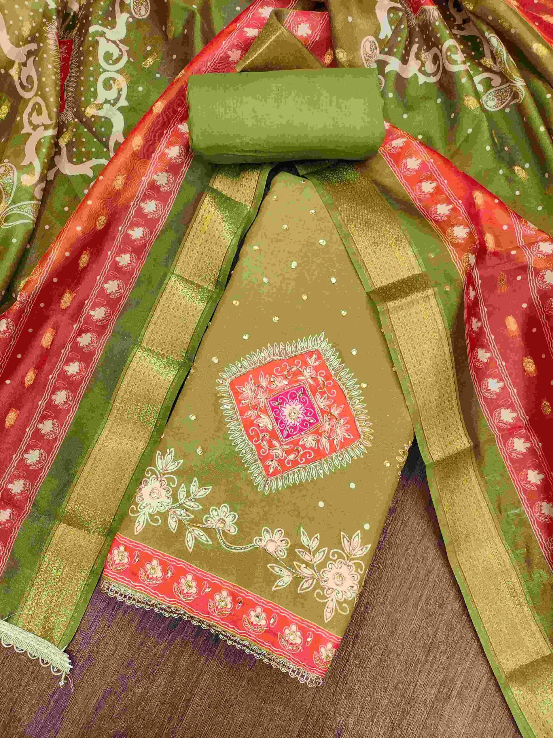 • Dupatta: Banarasi Organza Digital Print – 2.15 Meters