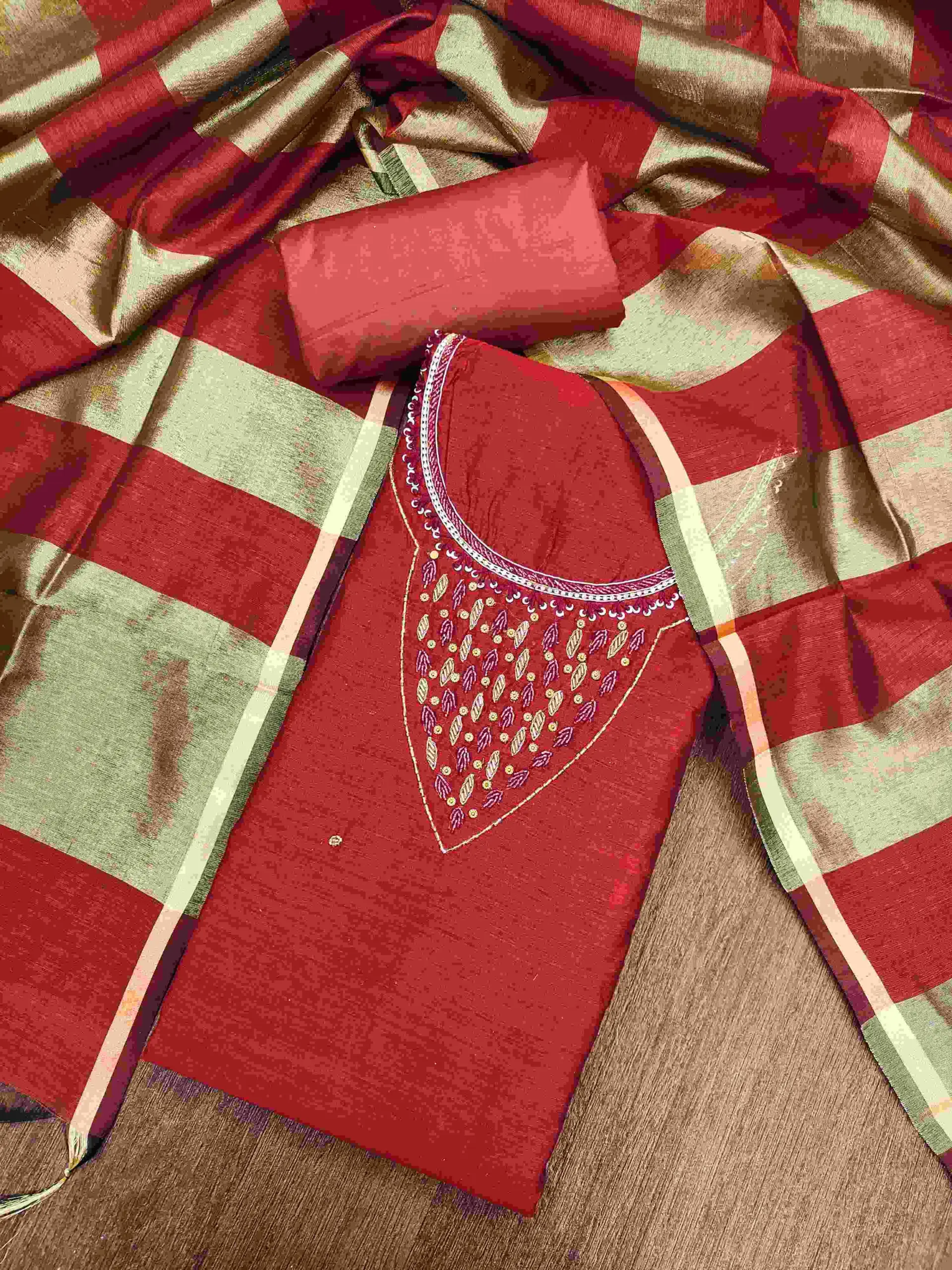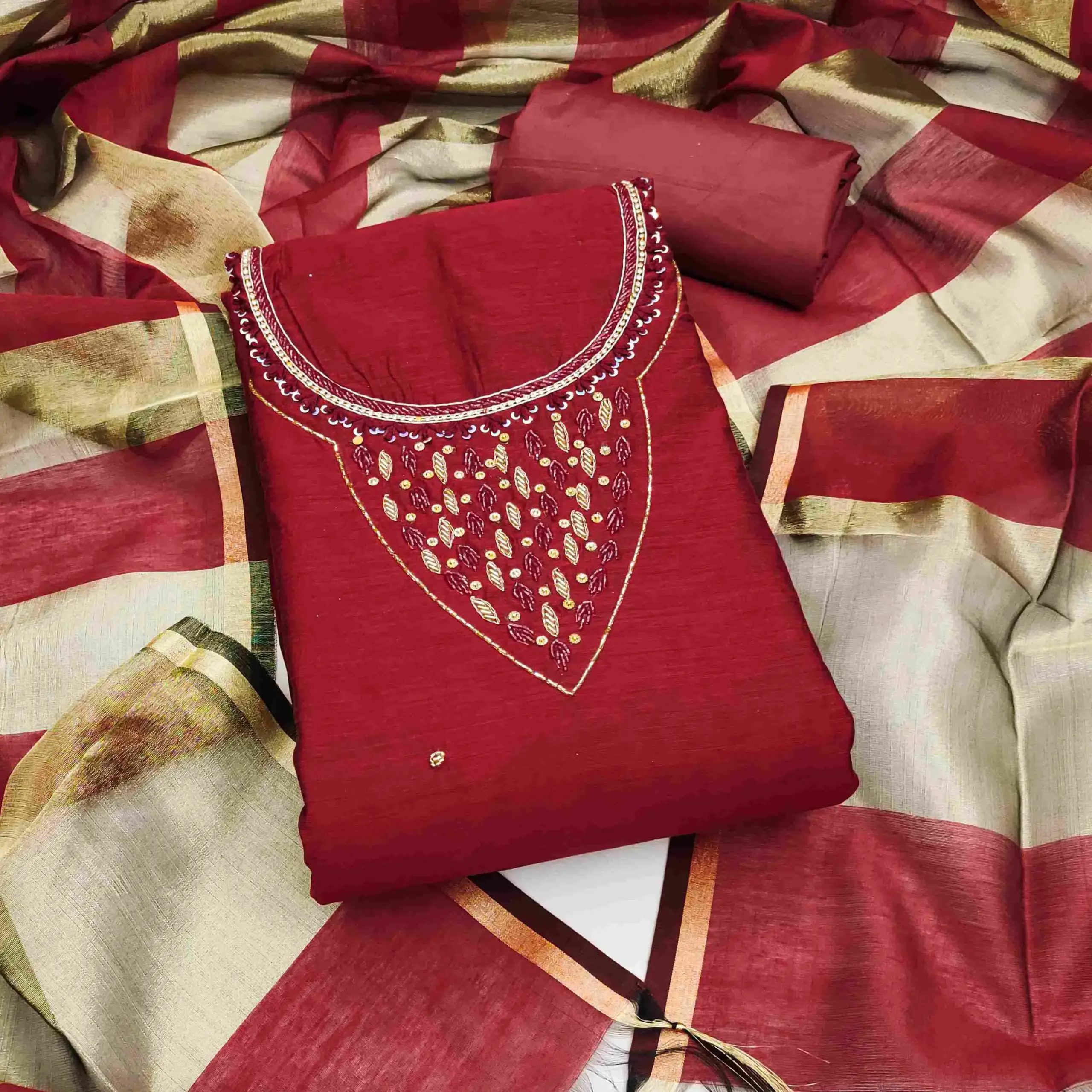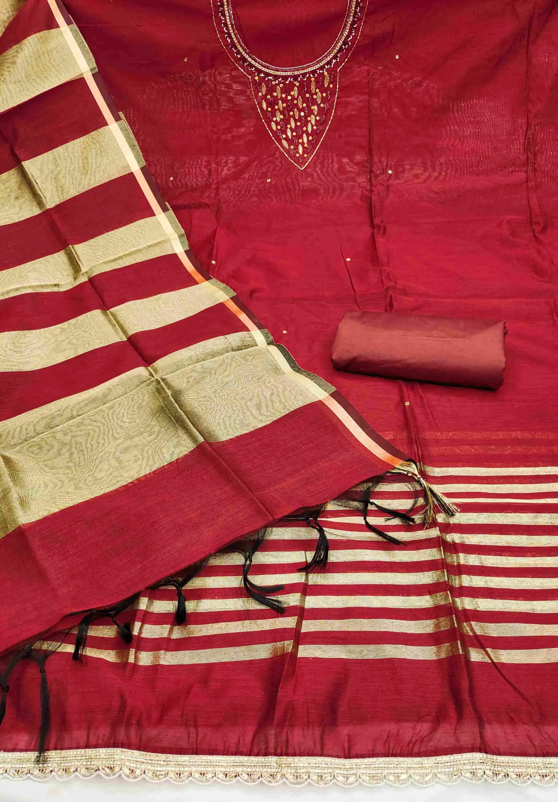 - Top: Mal Cotton Chanderi Jacquard With Handwork – 2.40 Meters