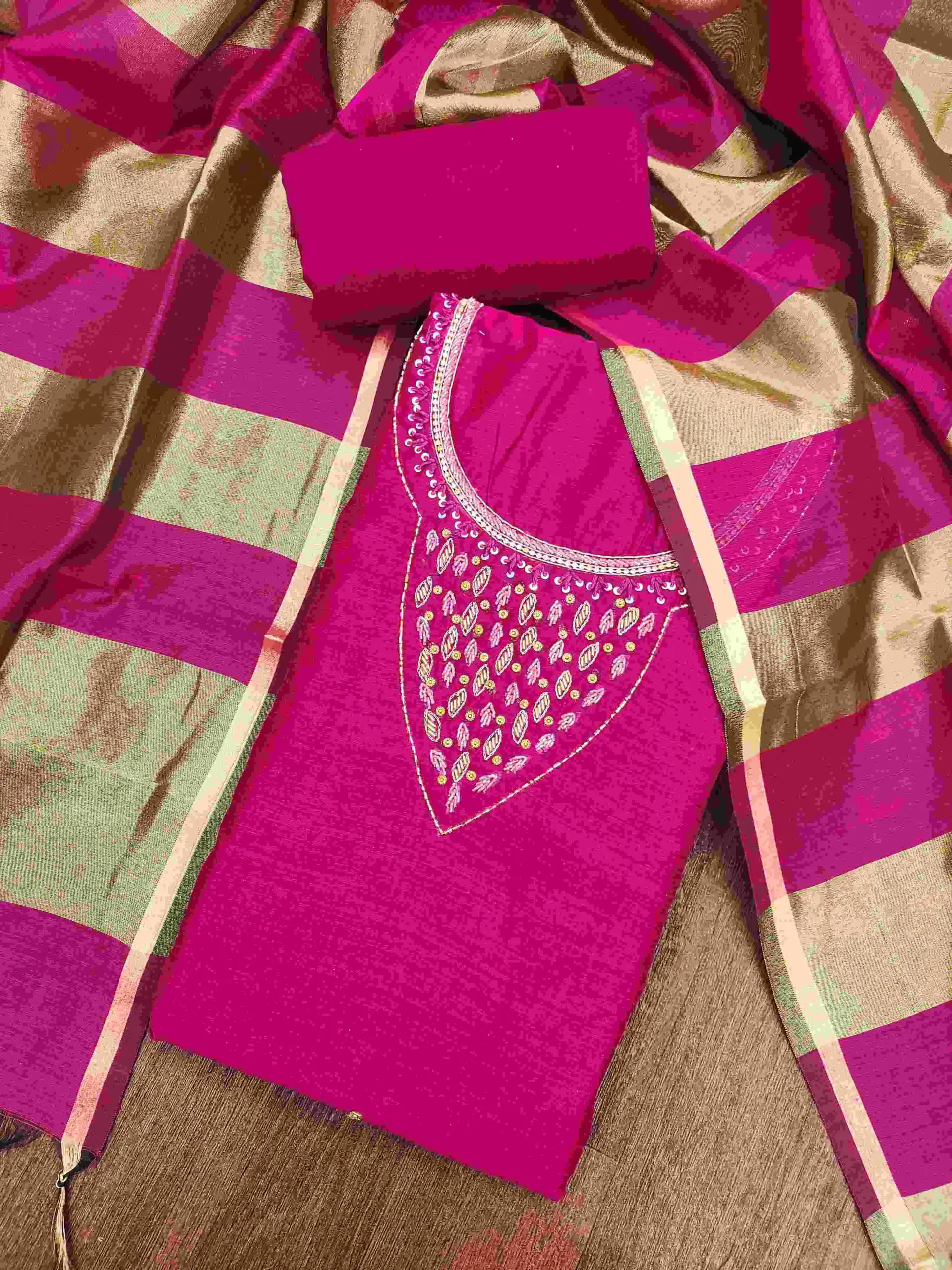 - Top: Mal Cotton Chanderi Jacquard With Handwork – 2.40 Meters