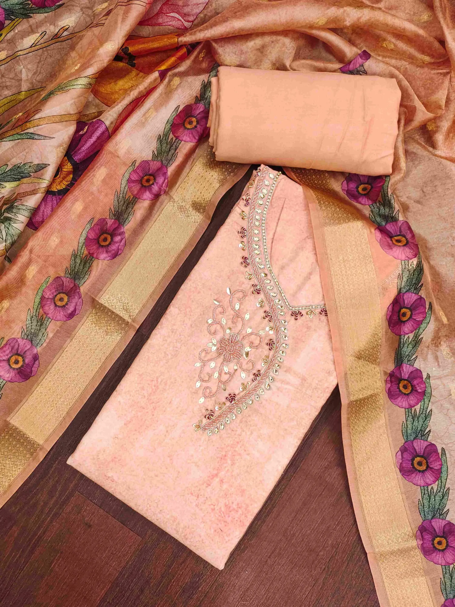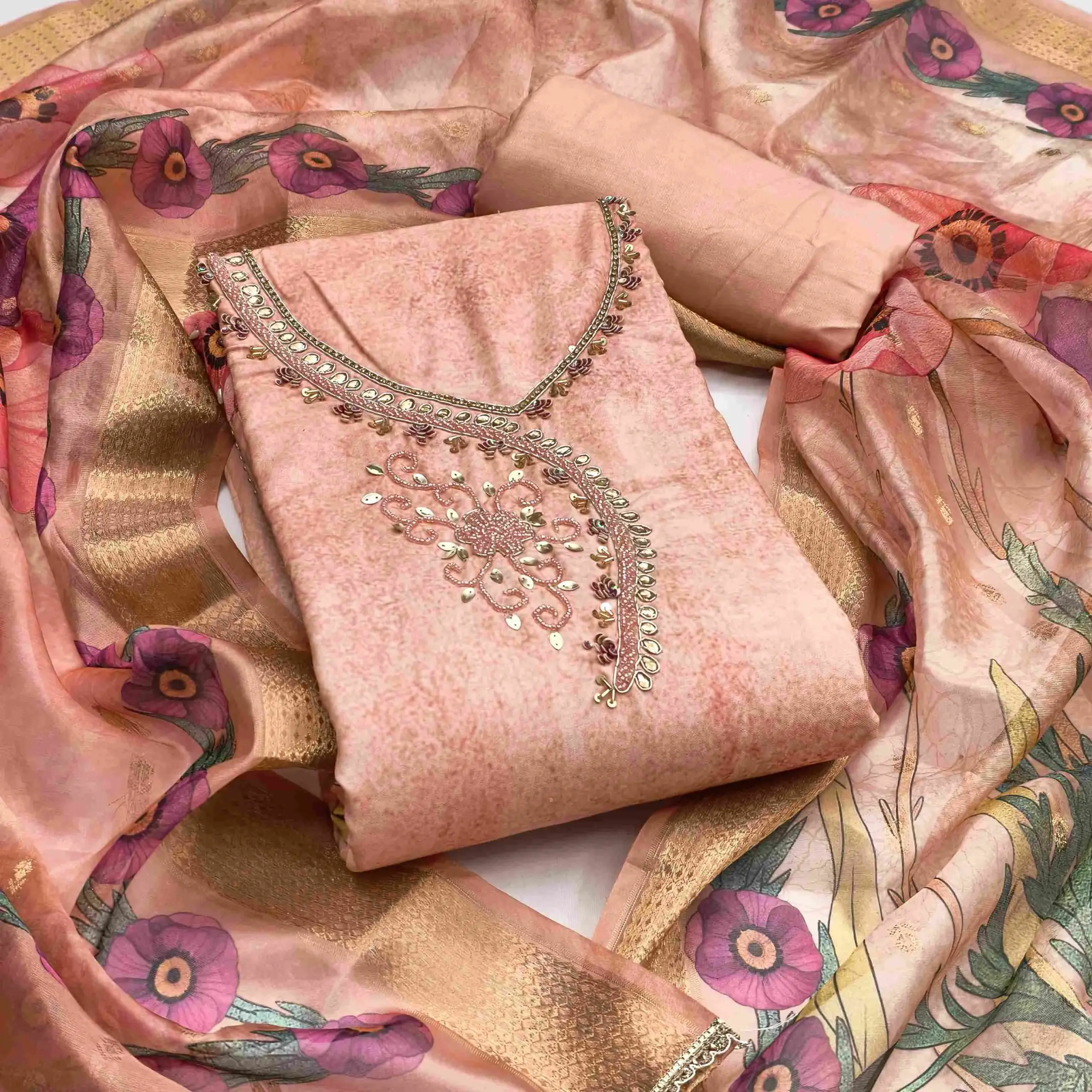 - Dupatta: Soft Organza Digital Dupatta – 2.15 Meters