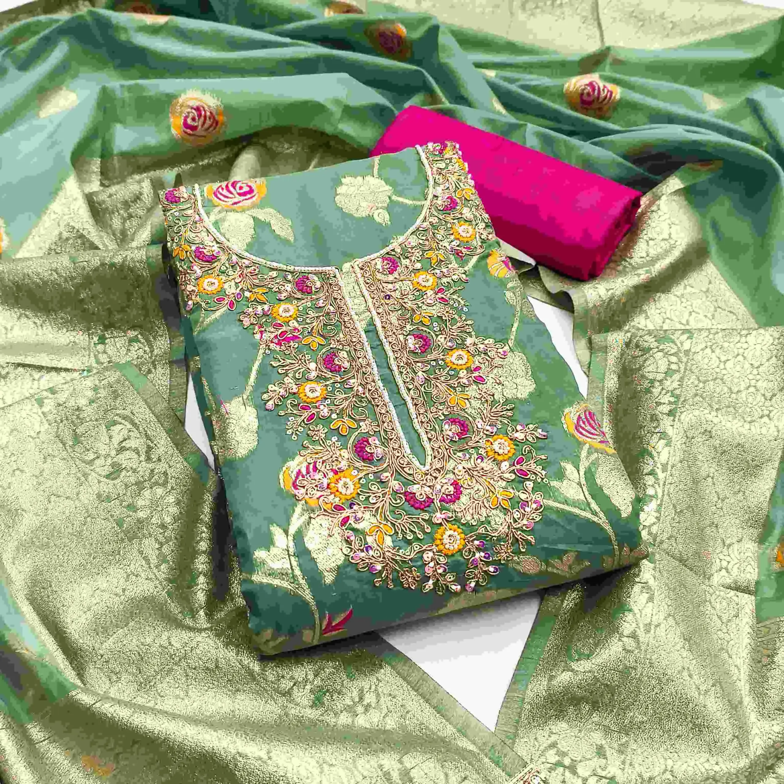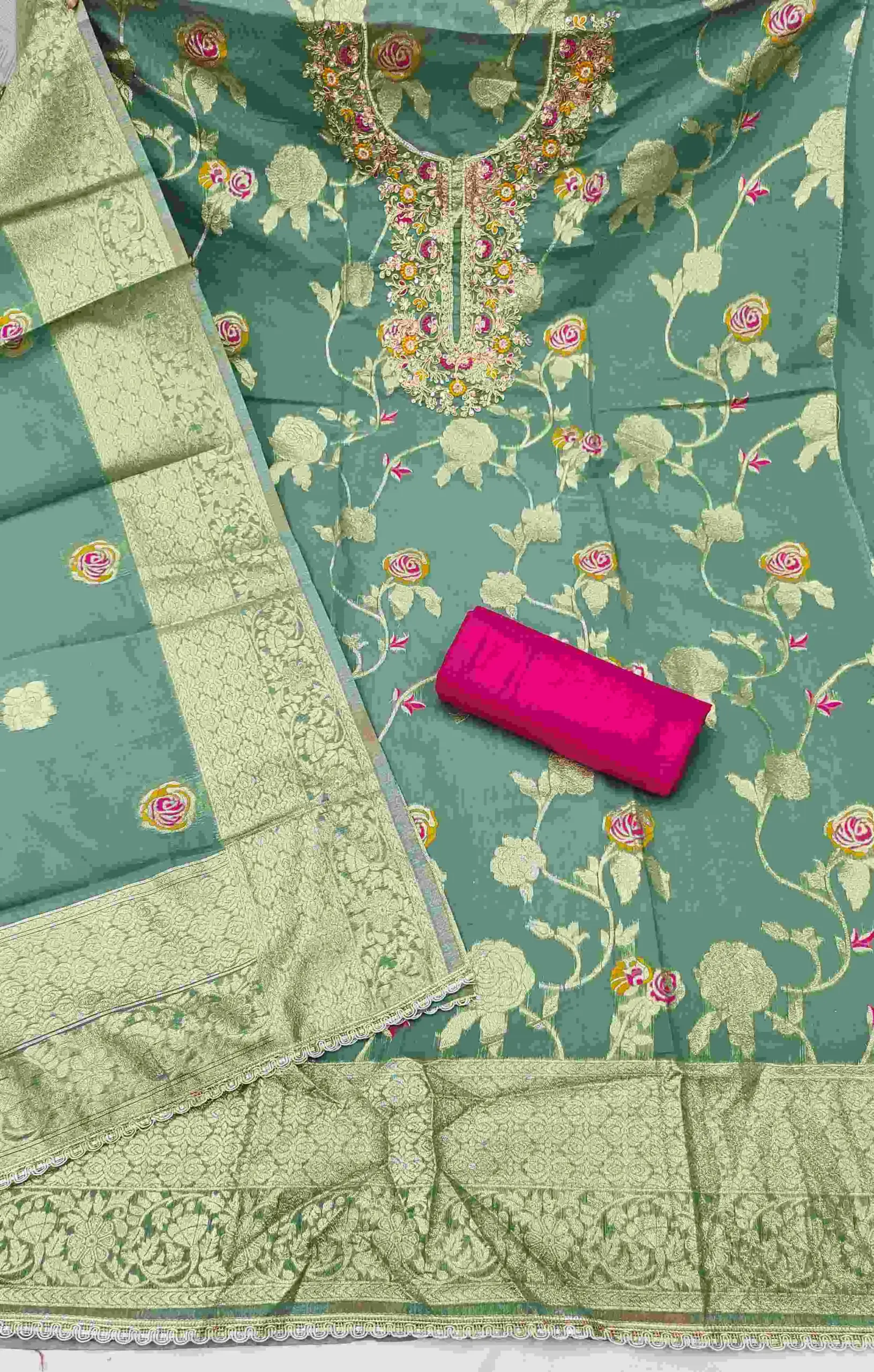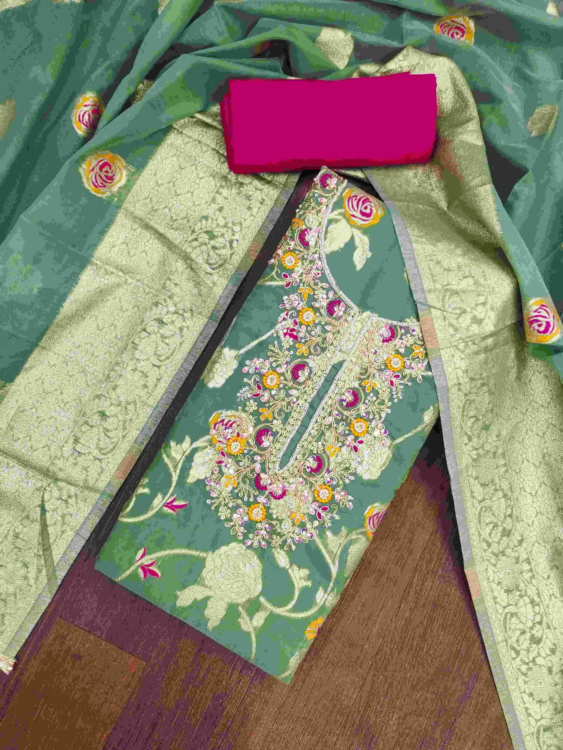 - Top: Banarasi Cotton Silk With Hand Work – 2.05 Meters