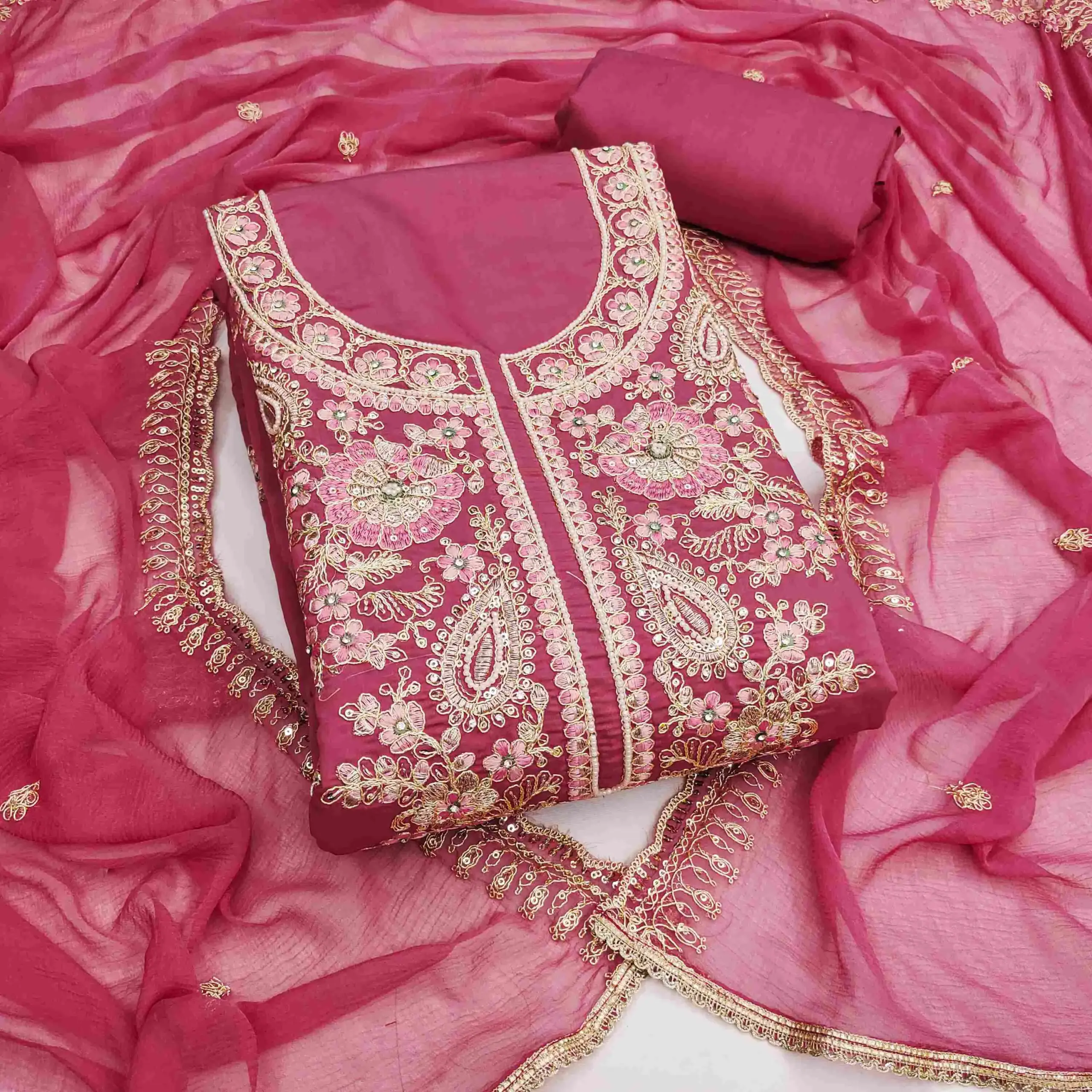 - Top: P V Cotton Silk Embroidery With Handwork – 2.05 Meters