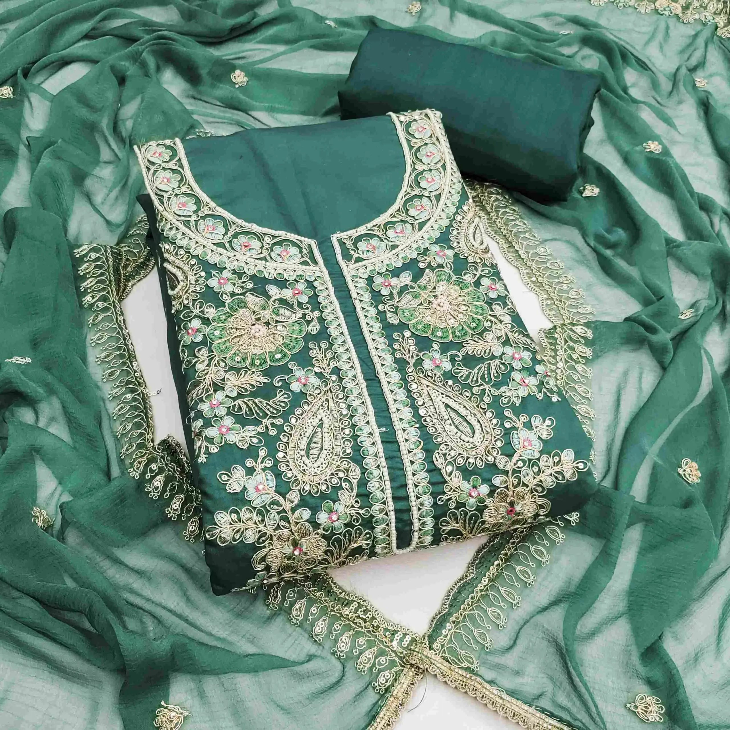 - Top: P V Cotton Silk Embroidery With Handwork – 2.05 Meters