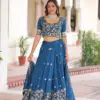 - Lehenga: Vichitra Silk With Heavy Sequins & Thread Embroidered Work