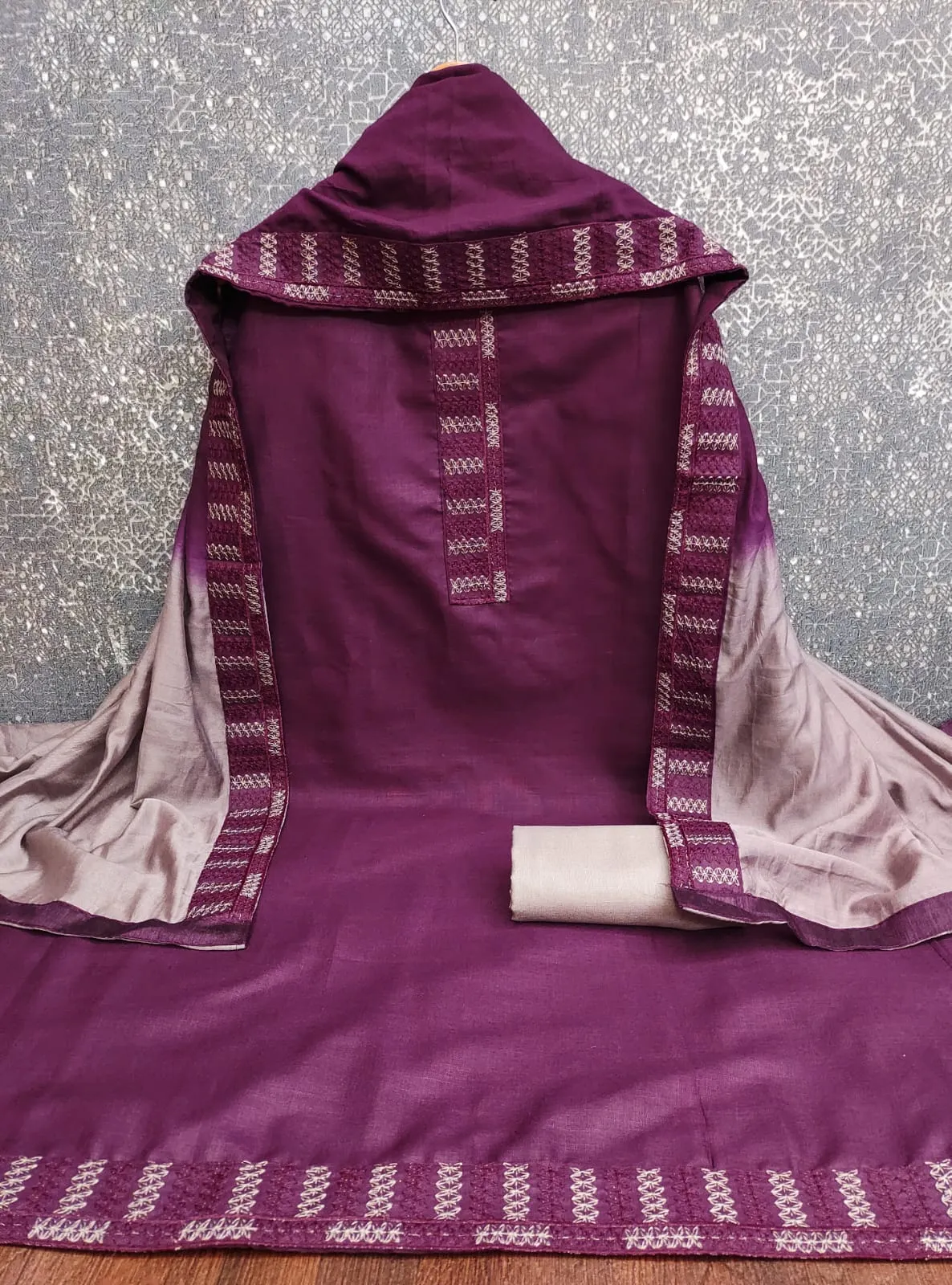 - Dupatta: Chanderi Shaded 1 Side Less Work