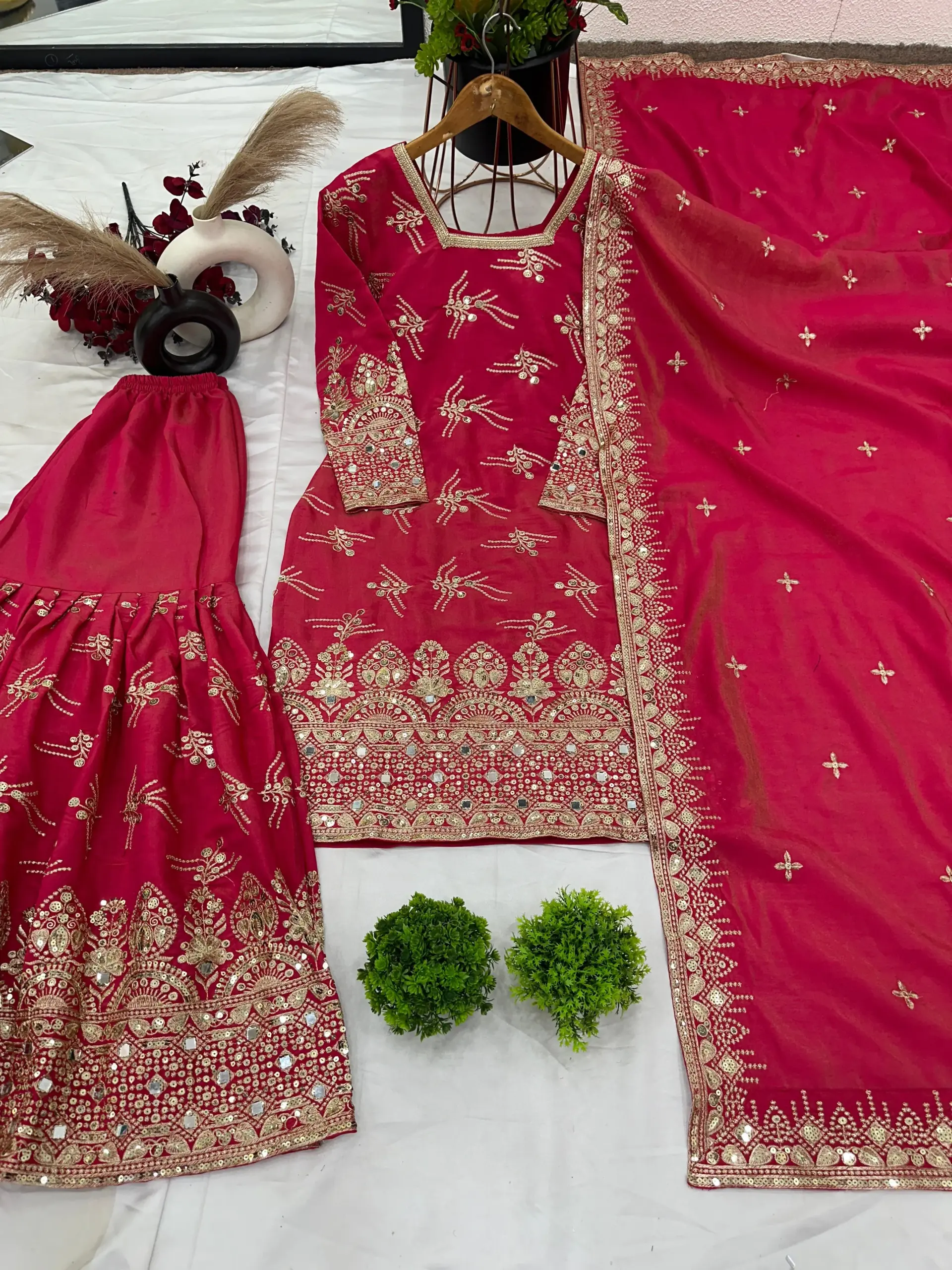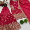 - Sharara: Pure Heavy Chinnon Silk With Embroidery Sequence Work