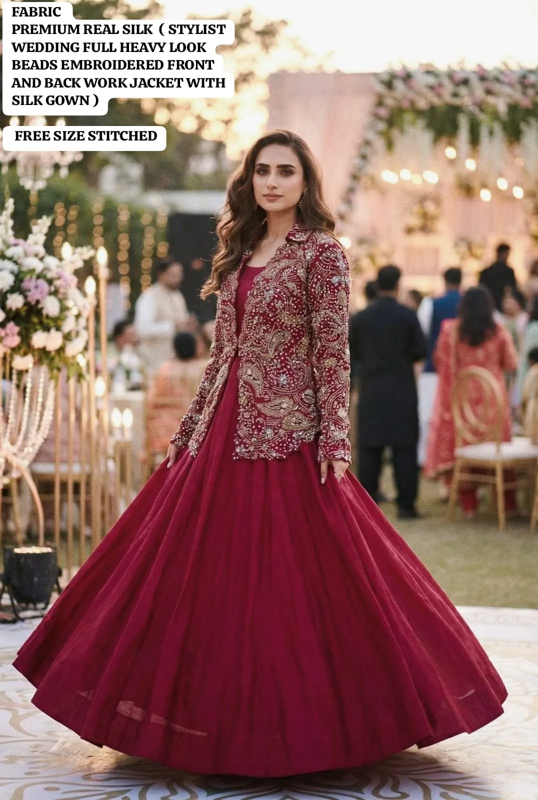 - Jacket: Stylist Wedding Full Heavy Look Beads Embroidered