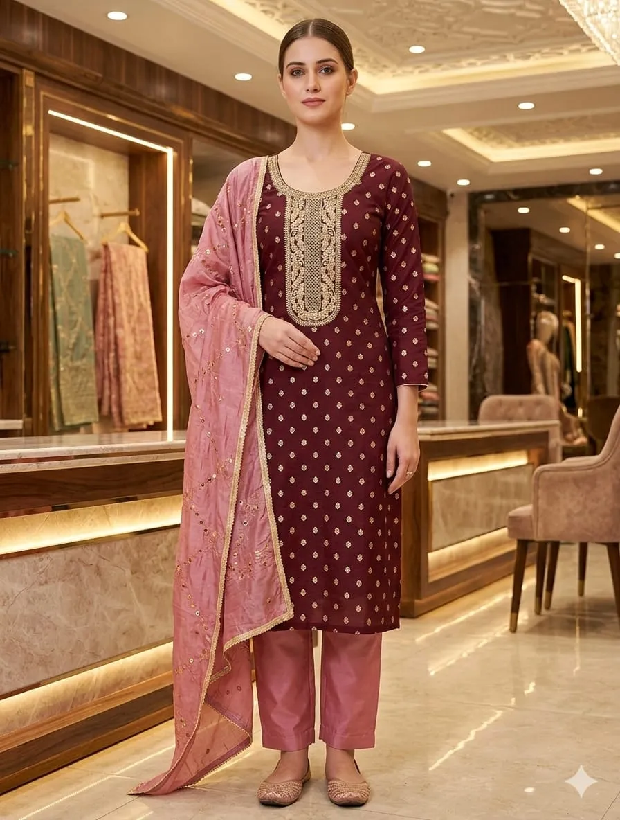 - Top: Banarashi Silk Weaving Zakard Koddling Squance Work