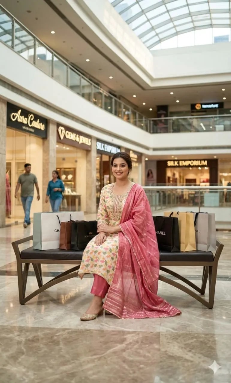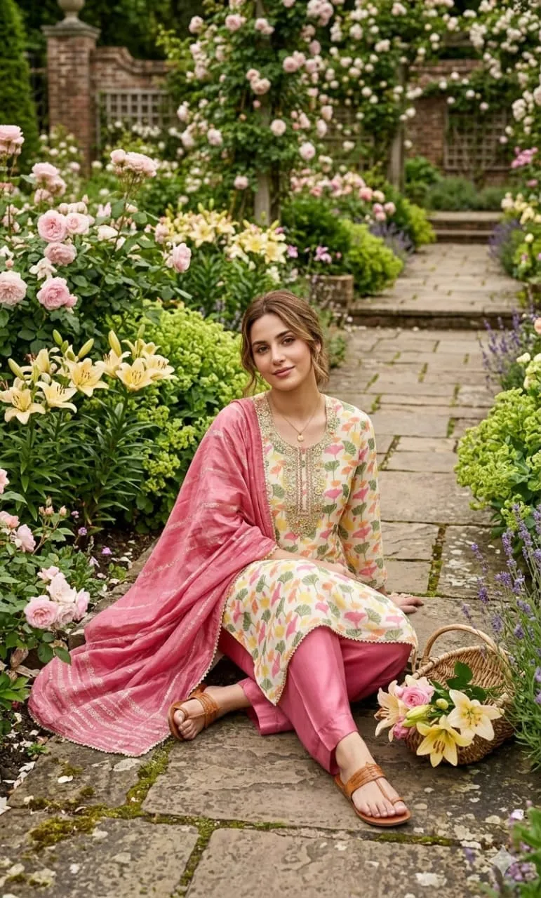 • Top: Simmer Silk Digital Print Kodding Sequence Work