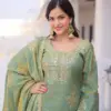 - Dupatta: Fendi Crush With Zari Sequins Embroidered Work And Cutwork Designer Lace Border