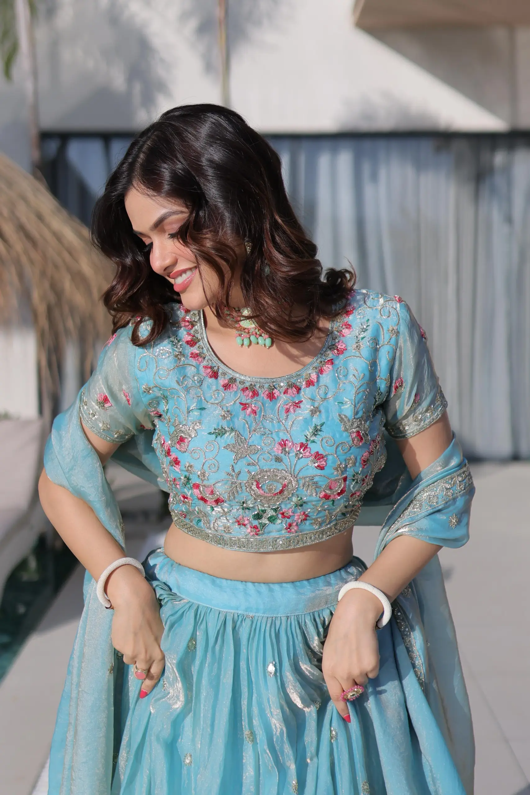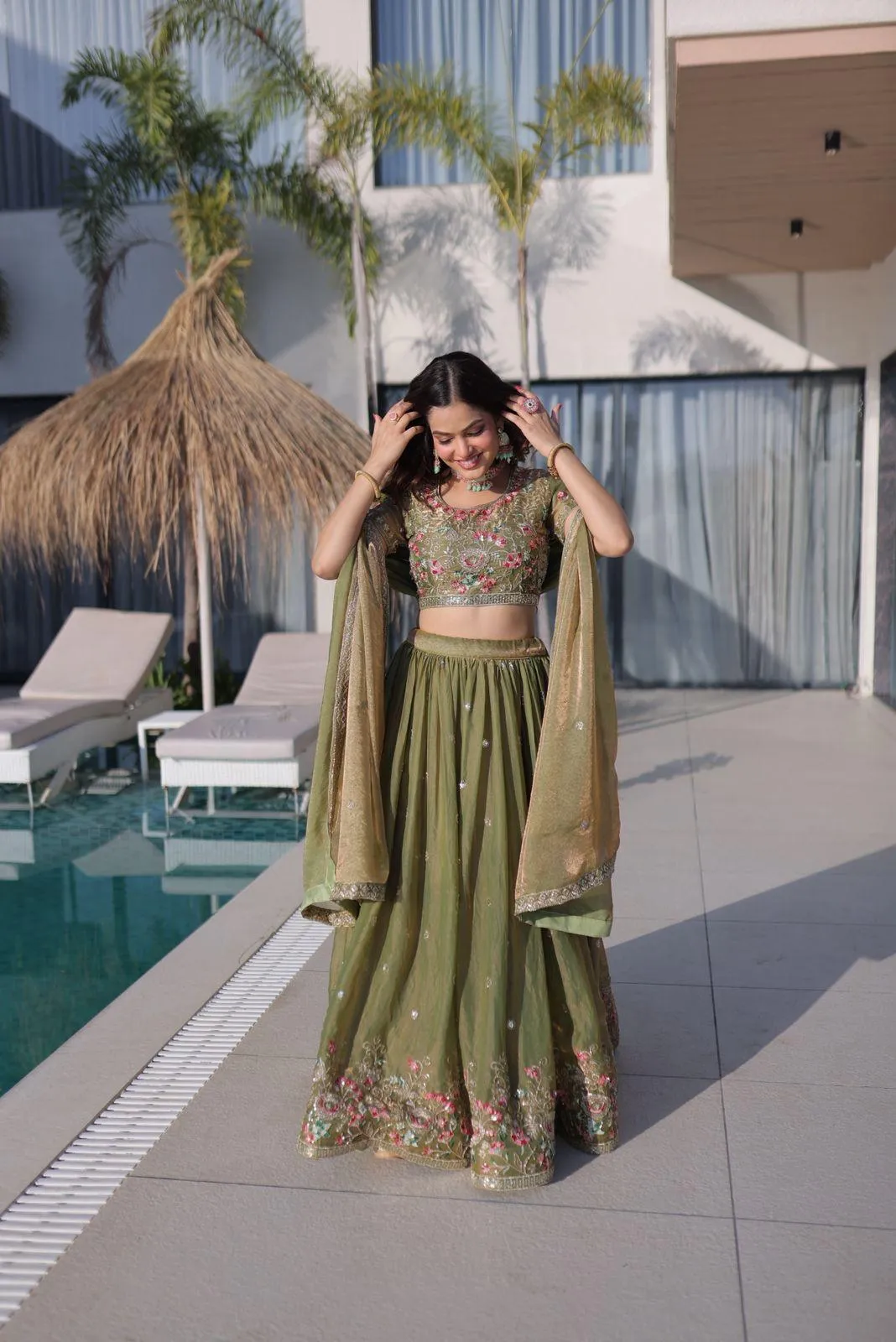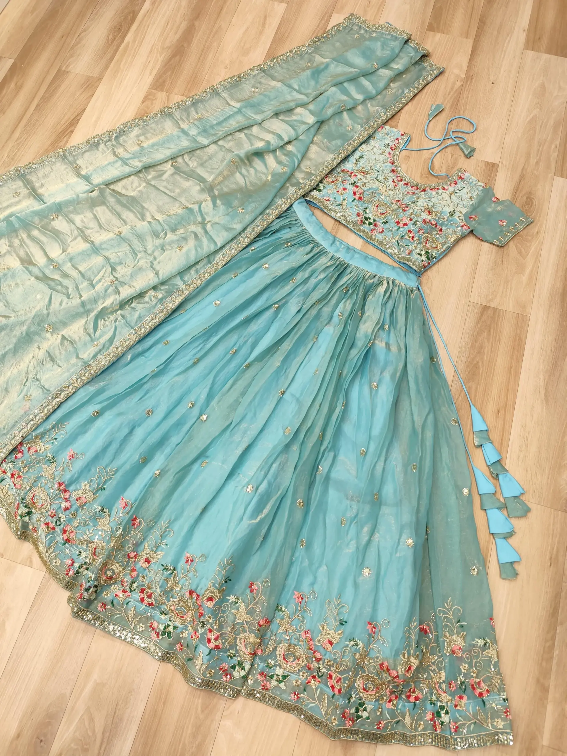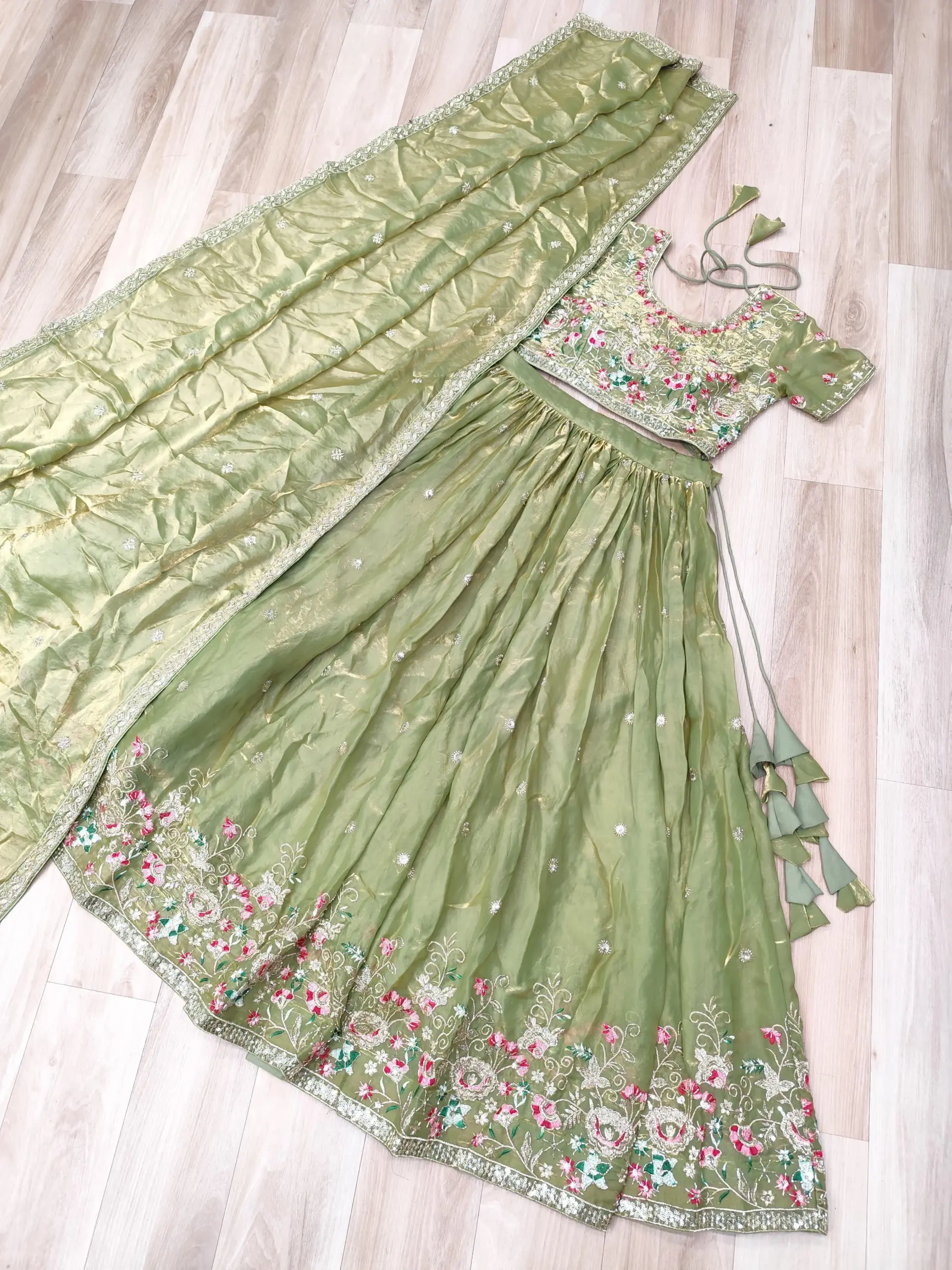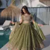 - Lehenga: Fendi Silk With Multi Thread Embroidery