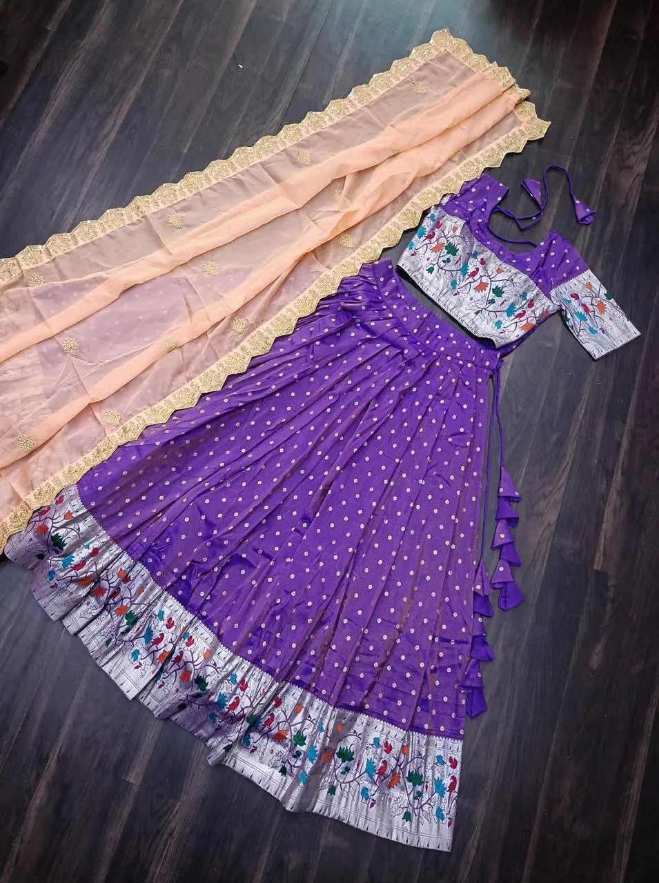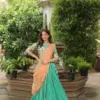 - Lehenga: Cosmos Jequard With Meena Weaving