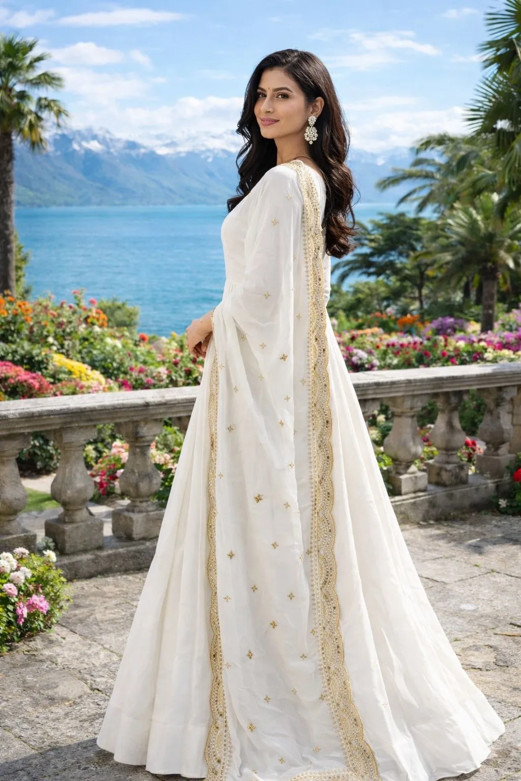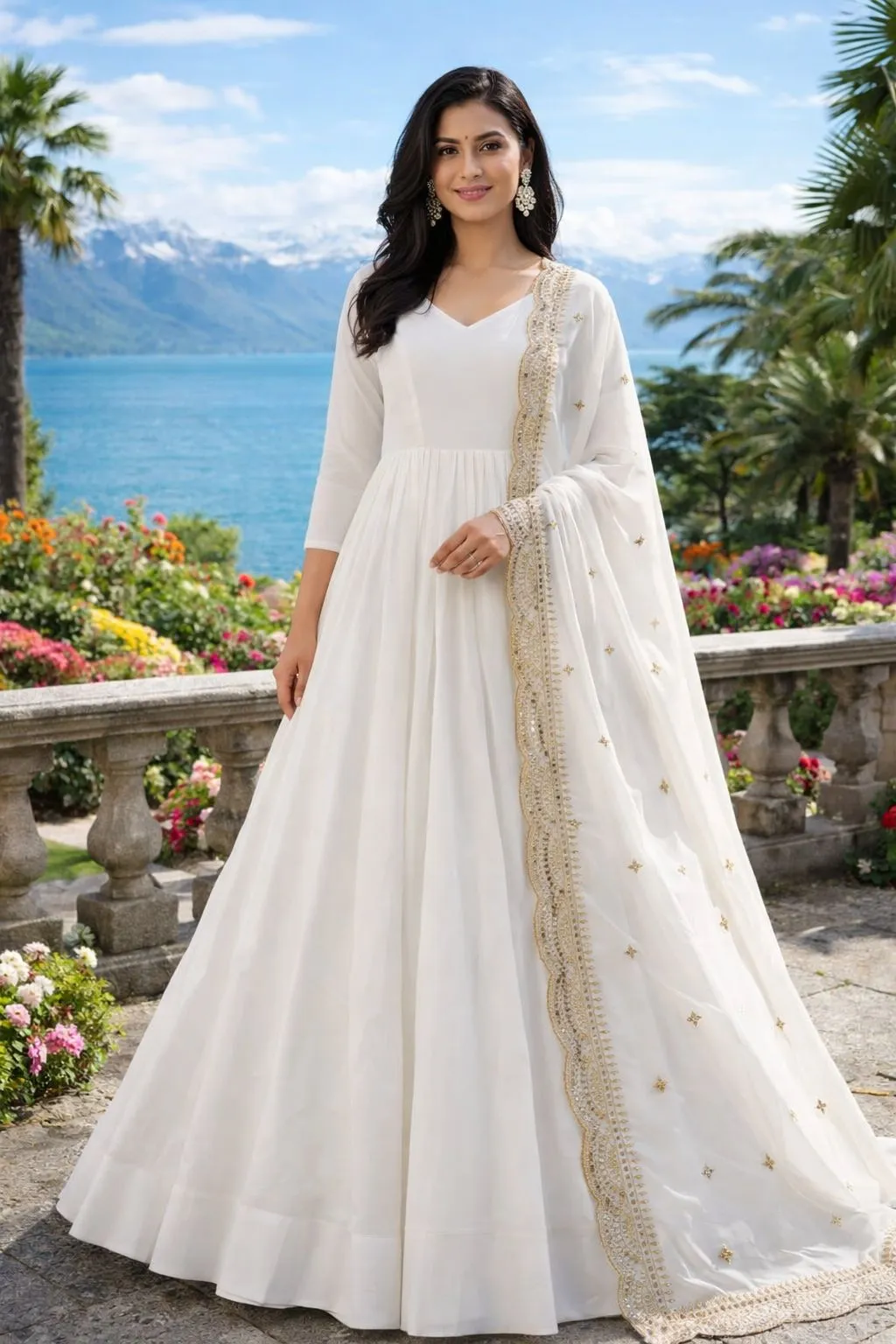 - Dupatta: Pure Soft Fox Georgette Embroidery Sequence Work With Cutwork Border