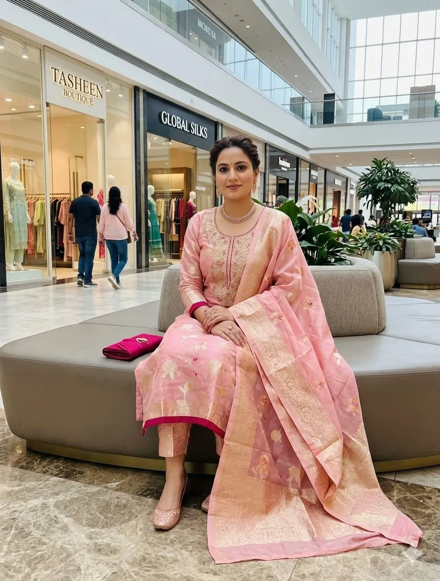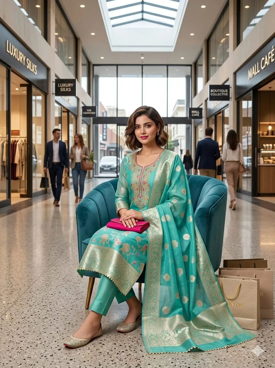 - Top: Modal Weaving Meenakari Zakard Kadding Sequence Work
