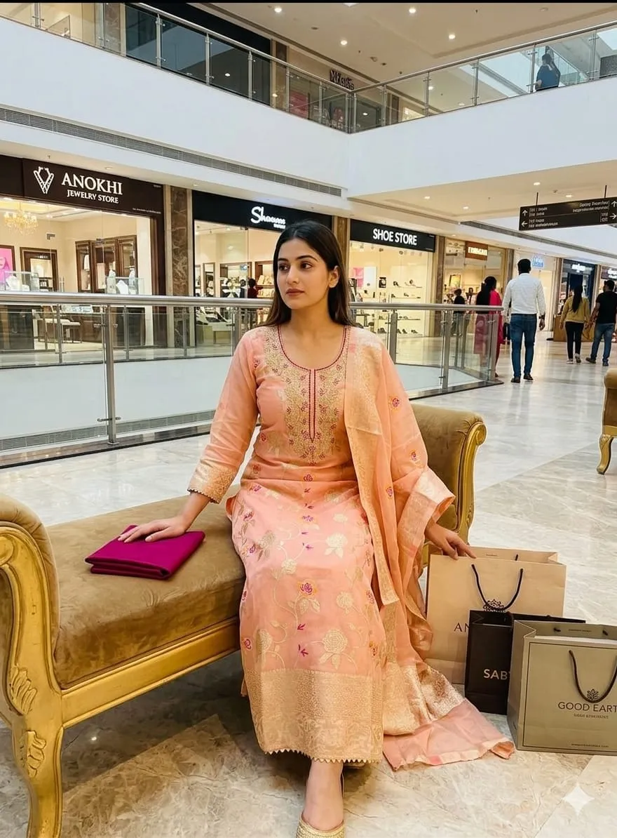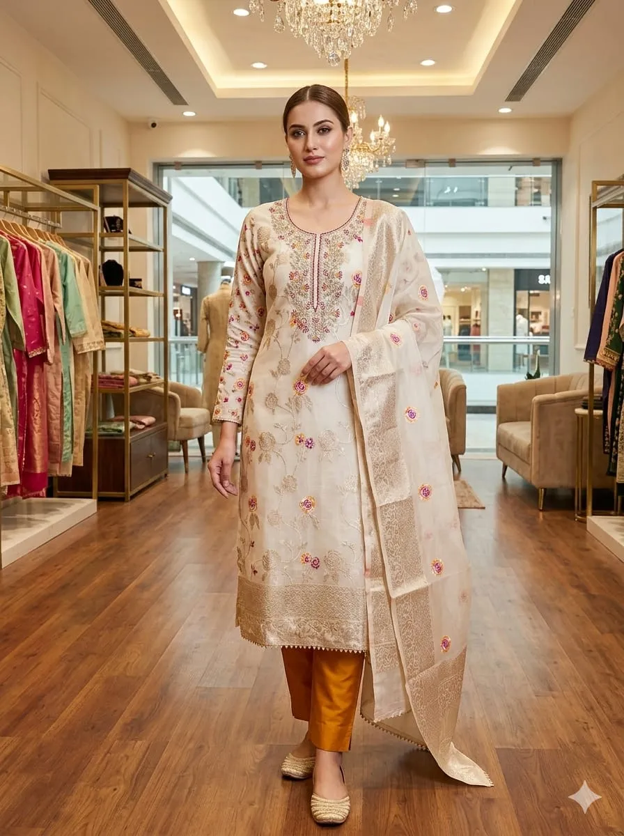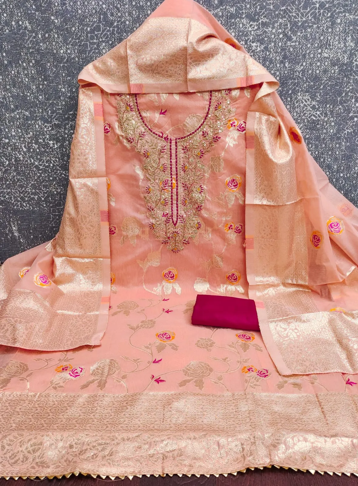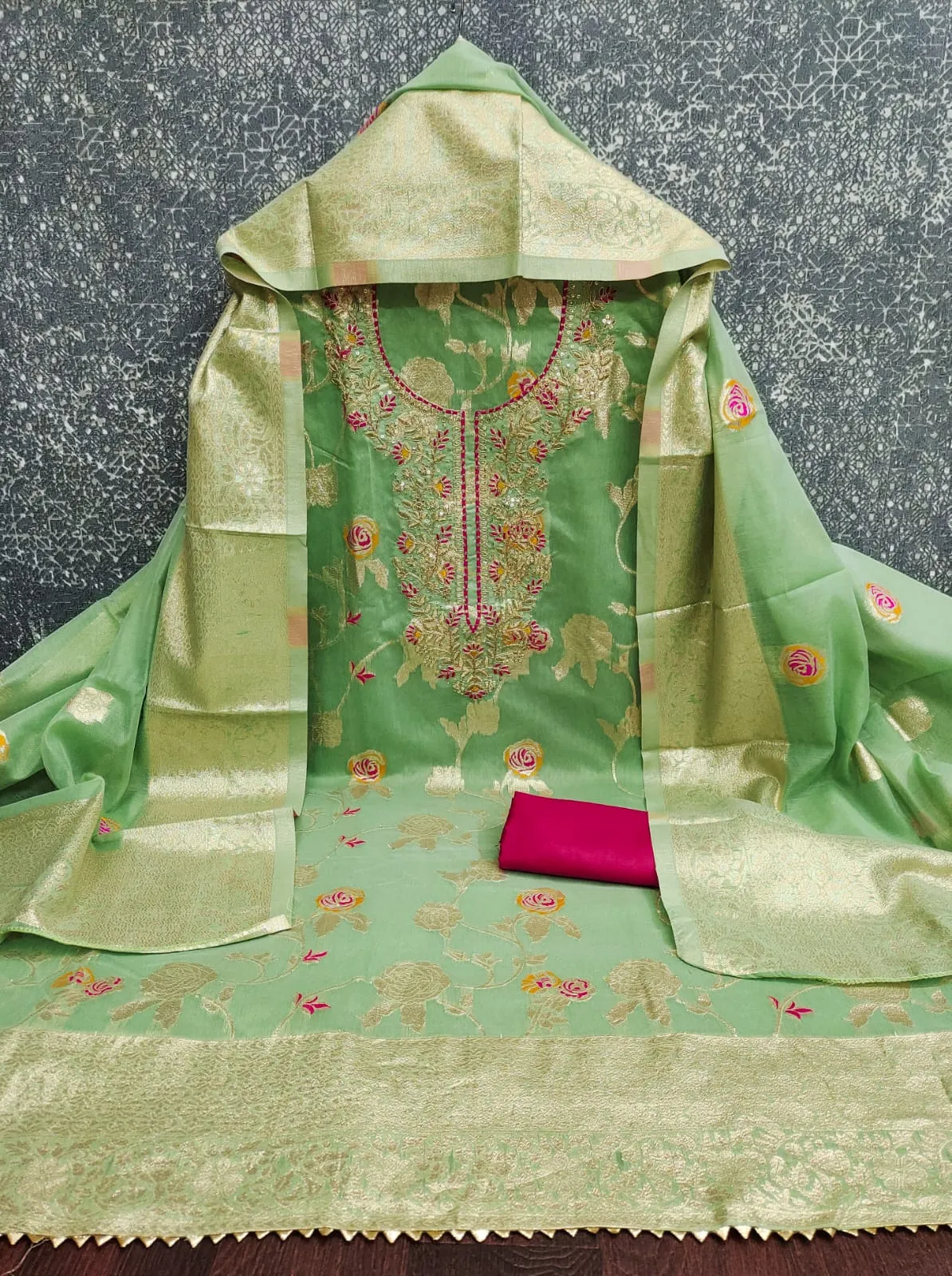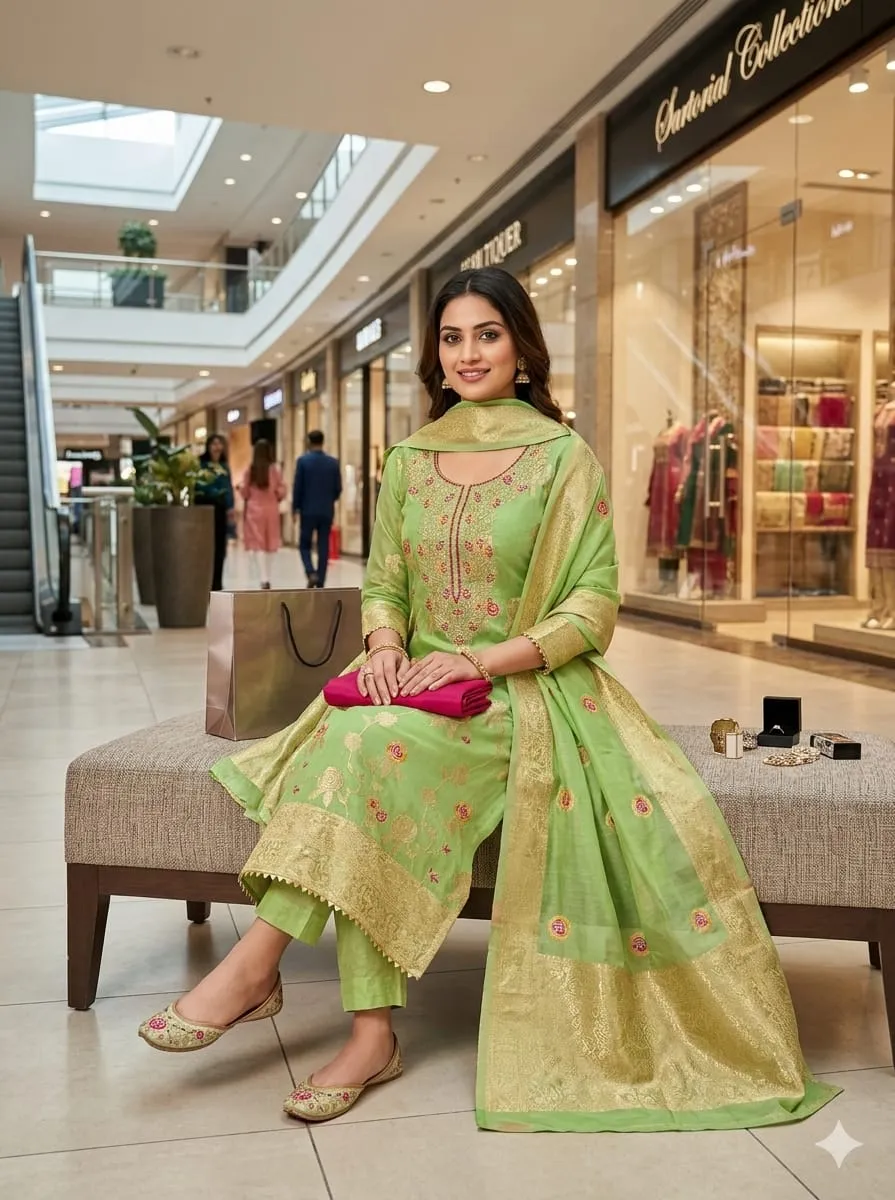 - Dupatta: Chanderi Meenakari Zakard