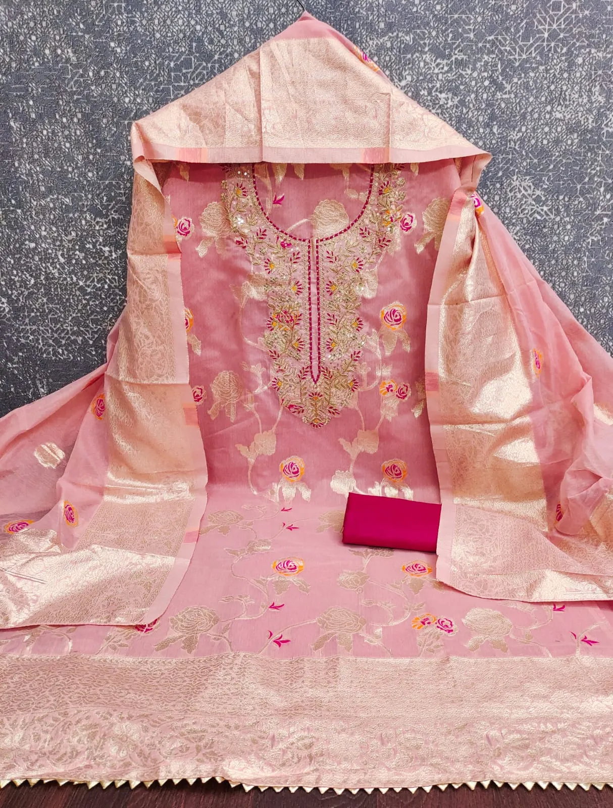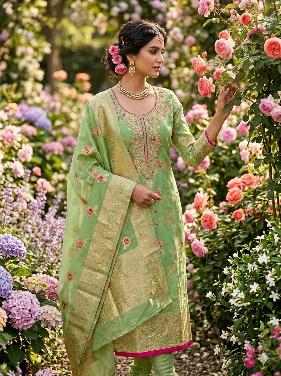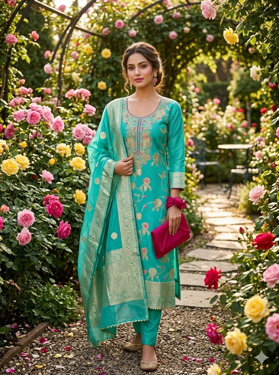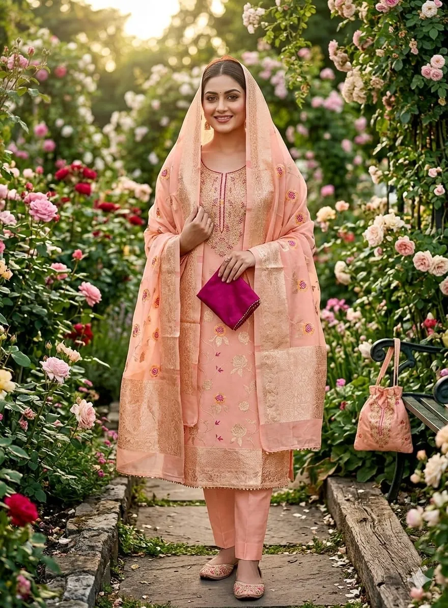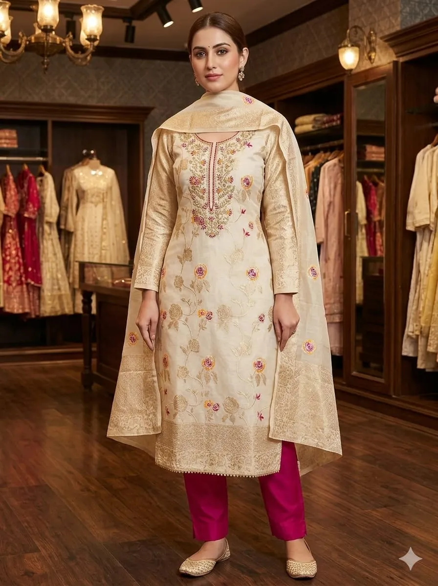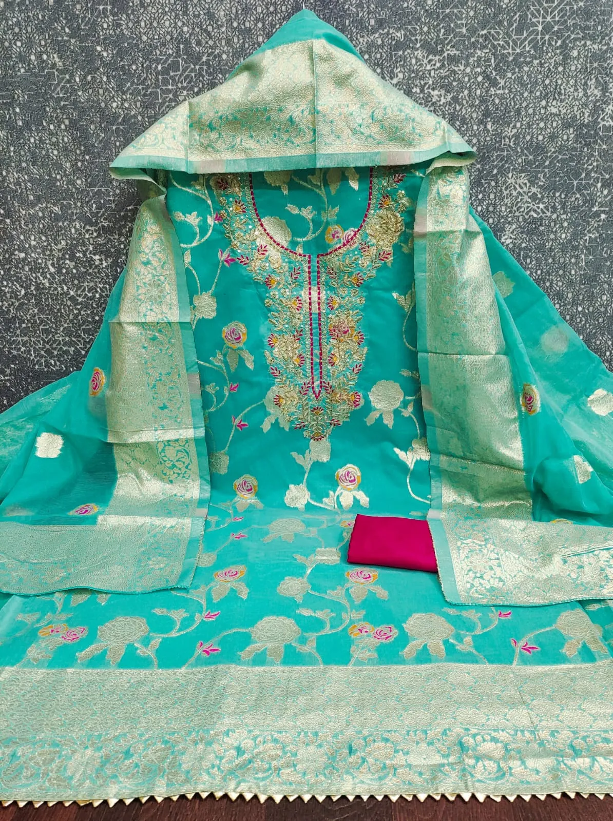 - Dupatta: Chanderi Meenakari Zakard
