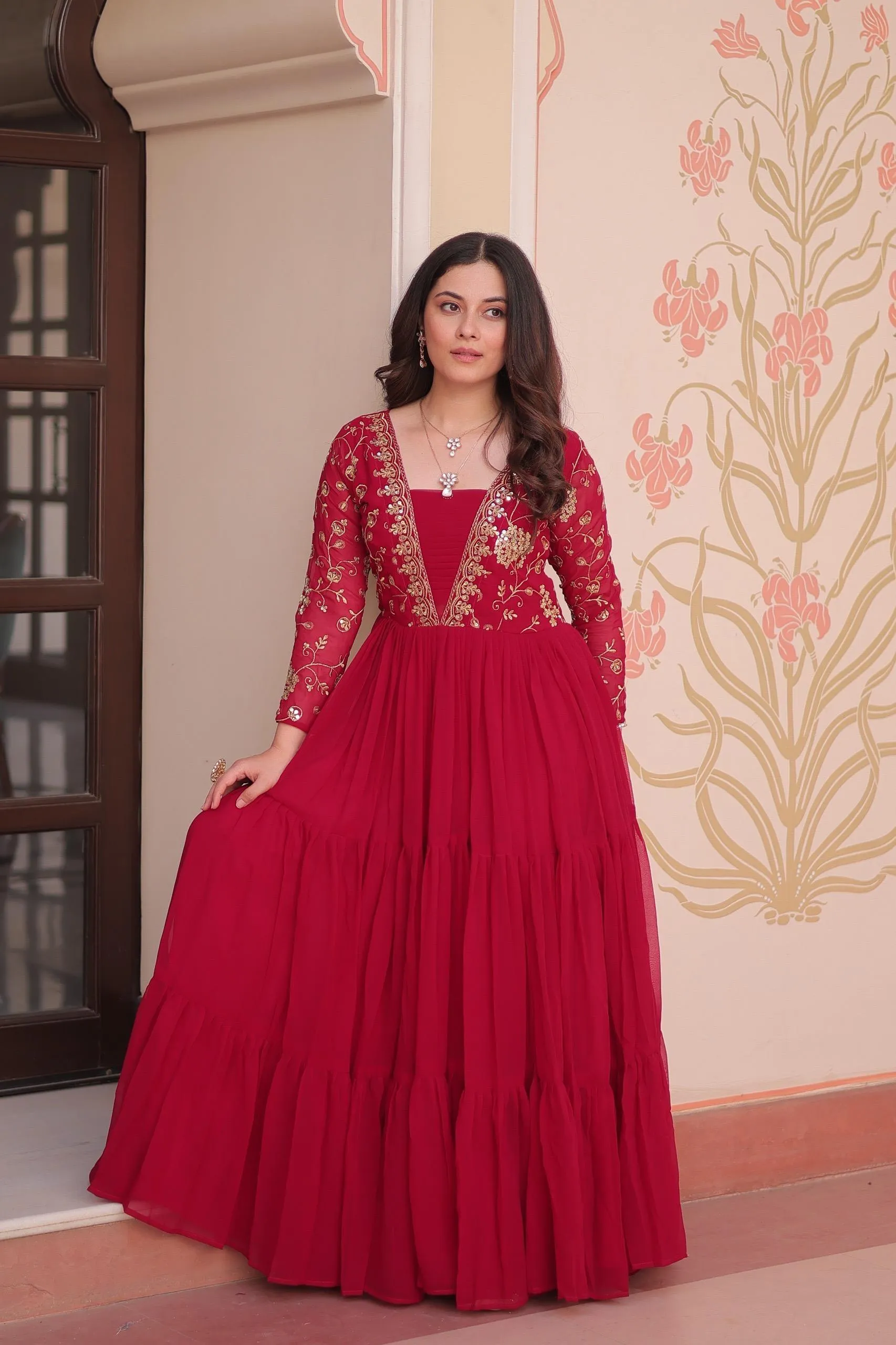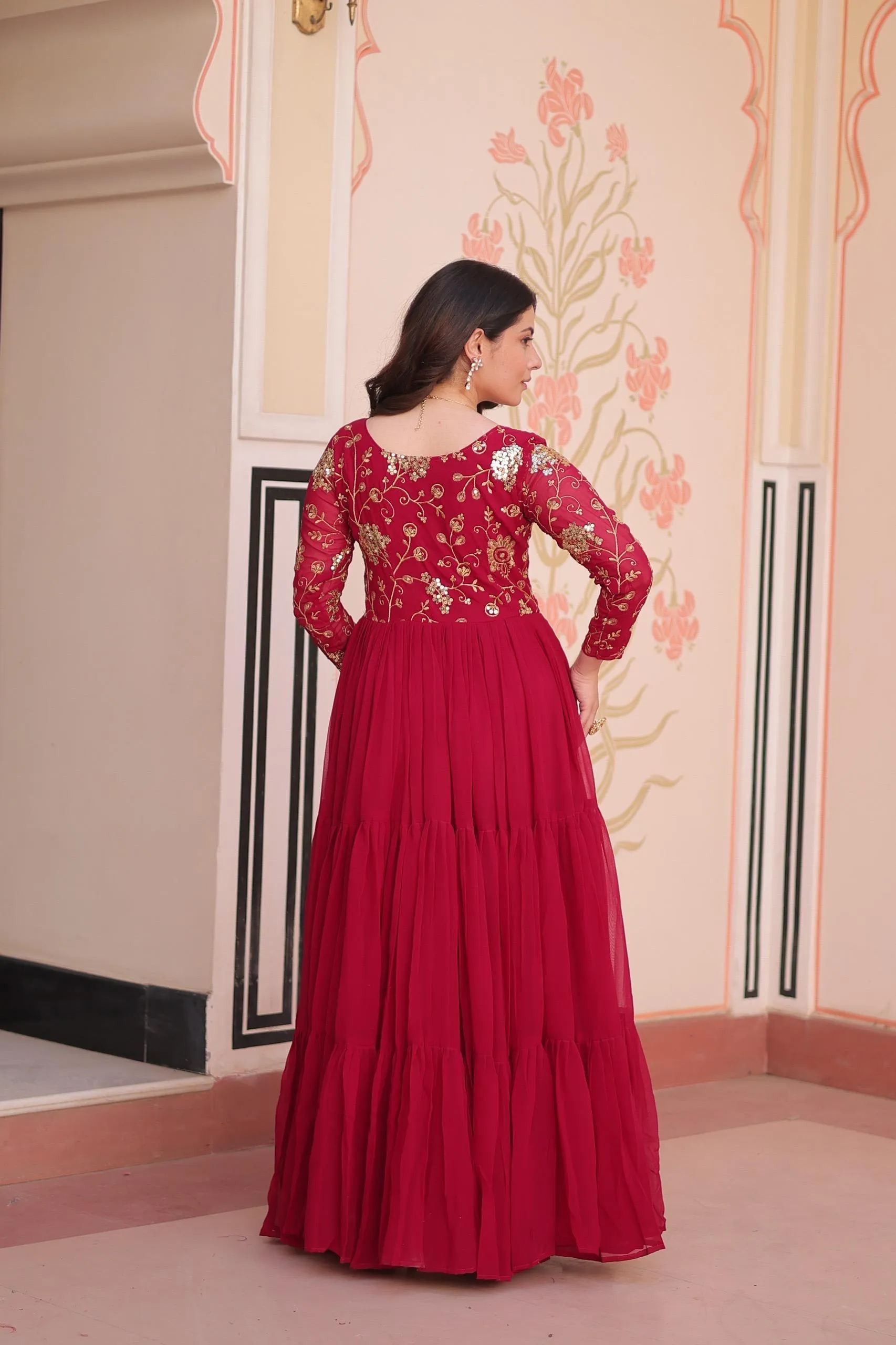 - & Work: Faux Blooming With Sequins & Zari Embroidered Work