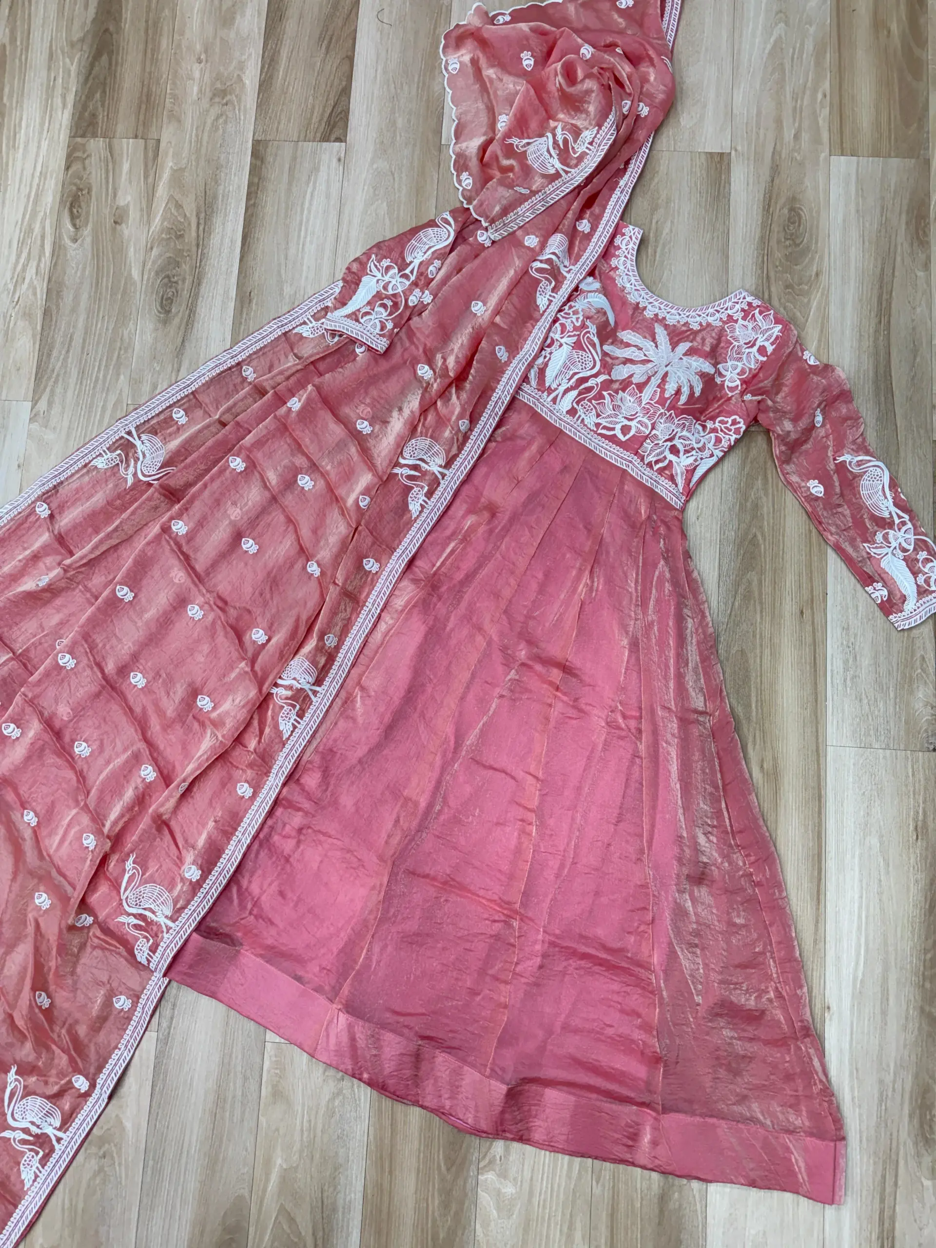 - Dupatta: Fendi Satin With Thread & Sequins Embroidered Arco Work