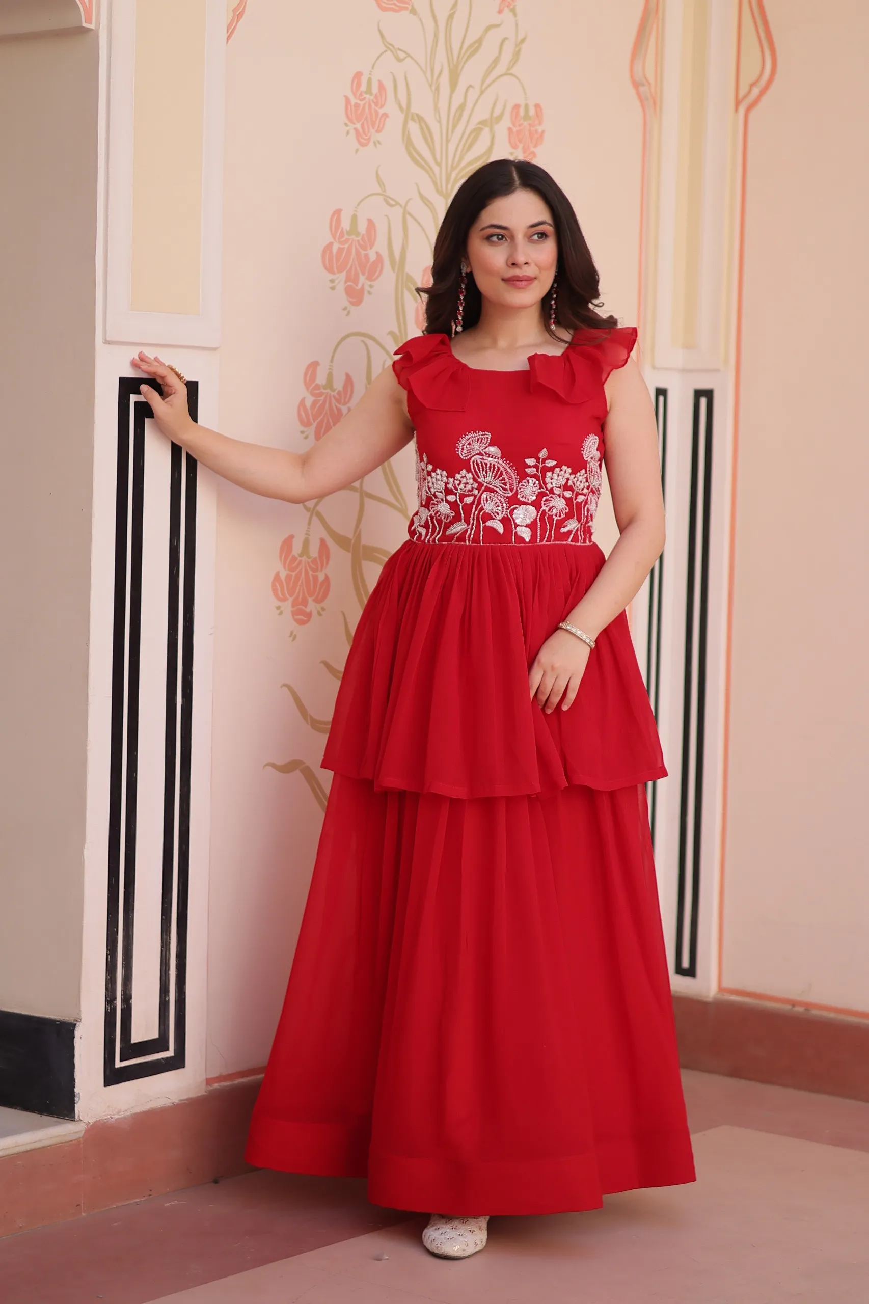• Gown: Faux Blooming With Beads Embroidered Work