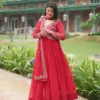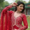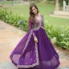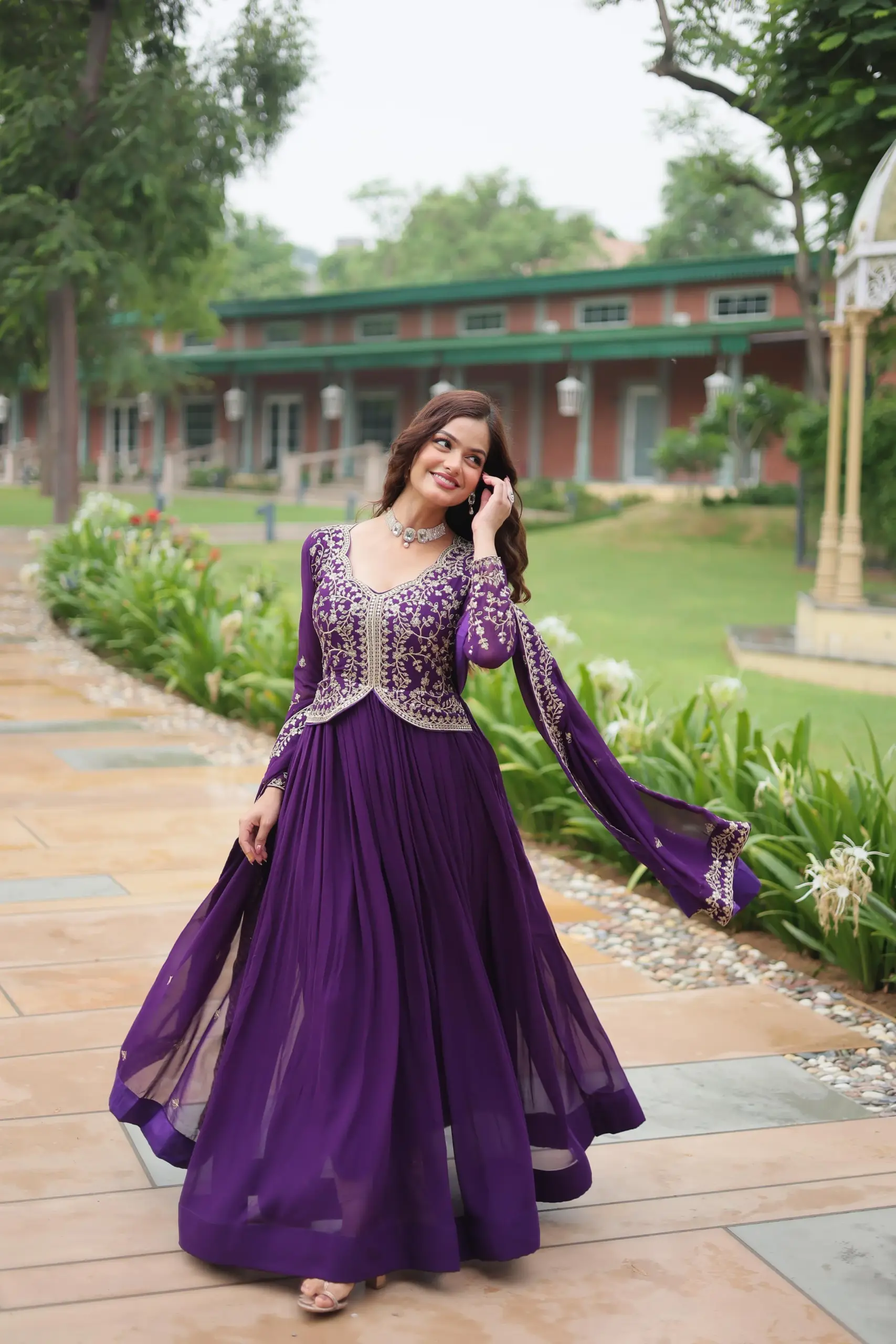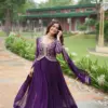 - Gown: Faux Blooming With Sequins: Multi & Zari Embroidered Work