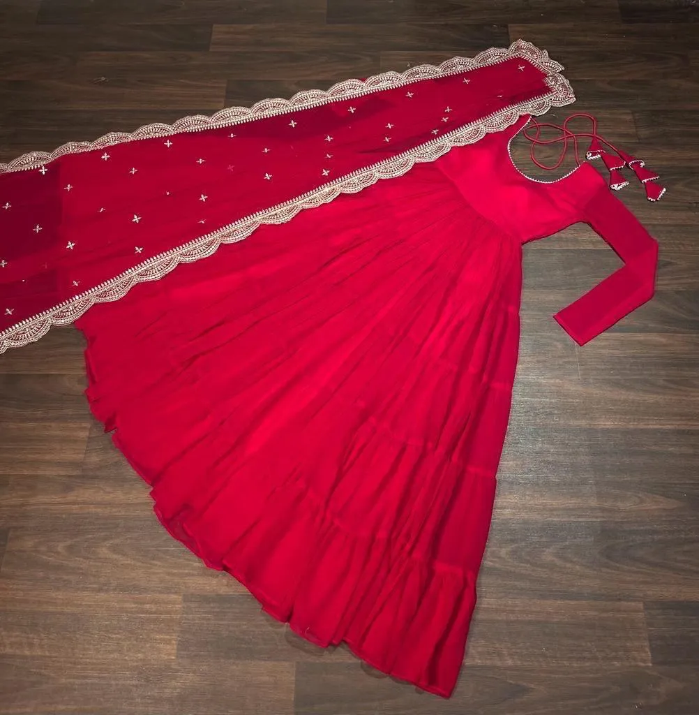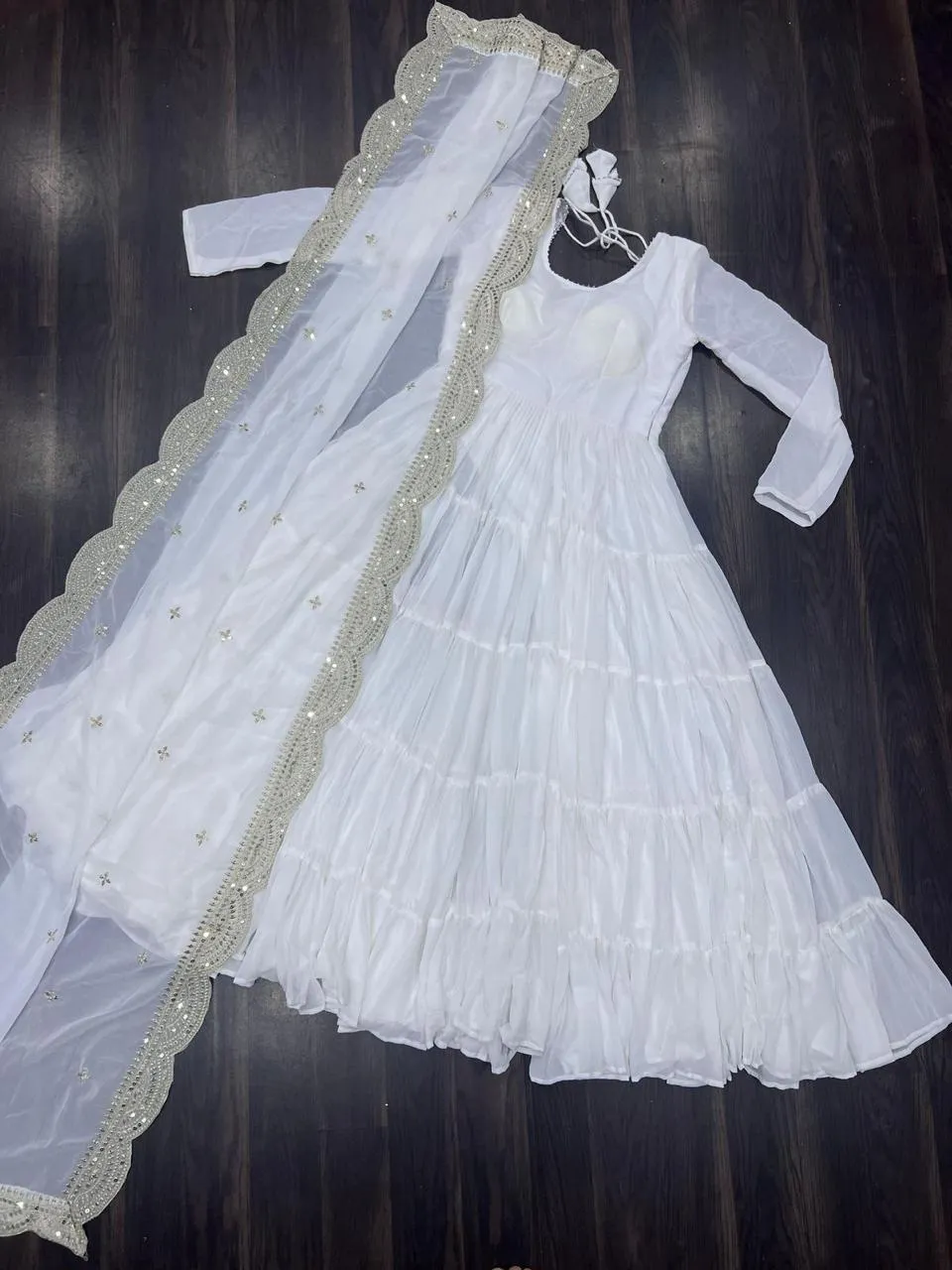 - Dupatta: Faux Blooming With Rich Sequins Embroidered Work