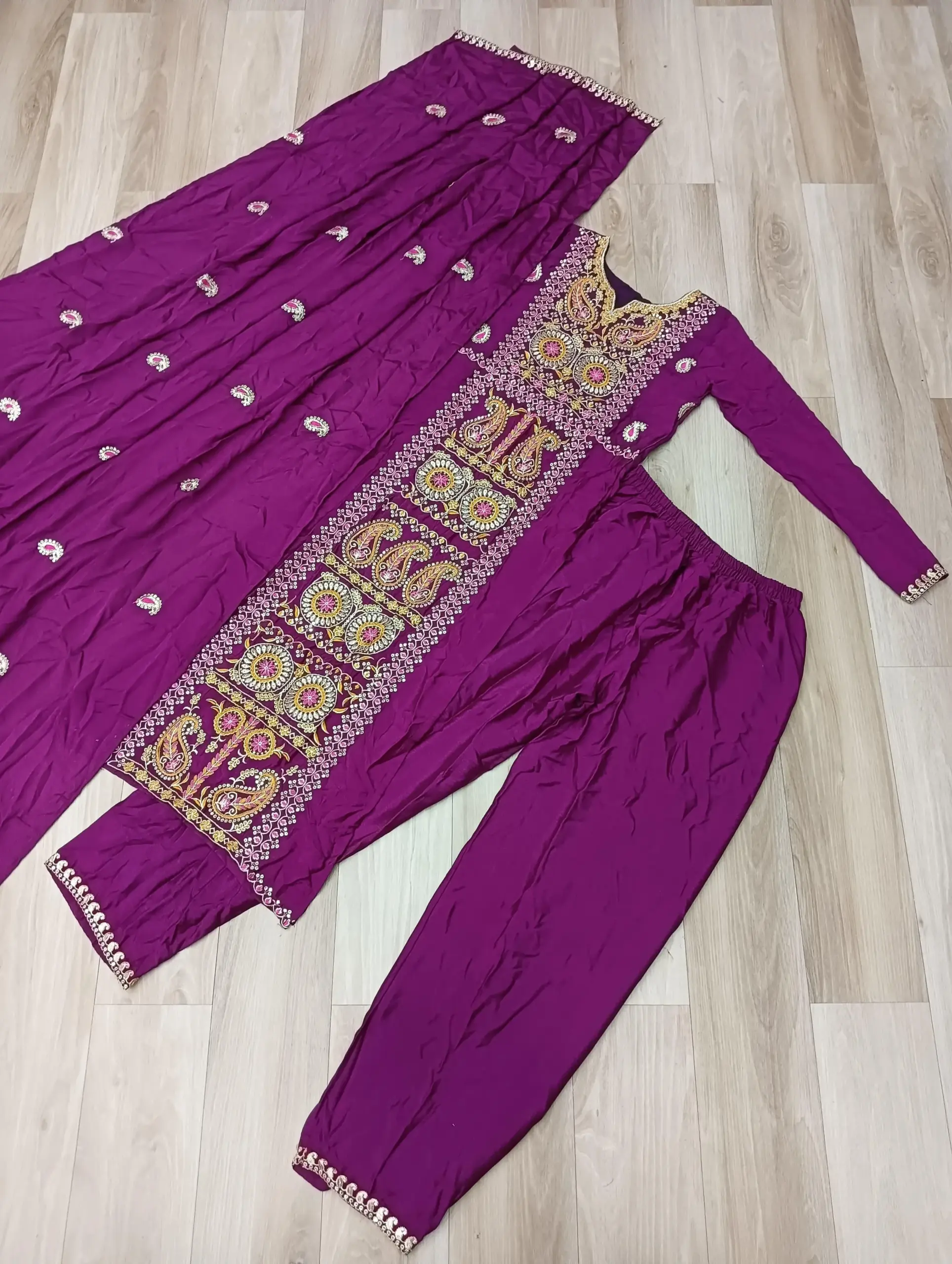 - Bottom: Chinnon With Multi & Thread Embroidered Work Lace