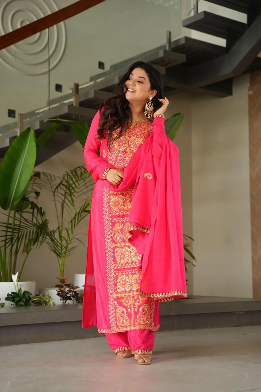 - Dupatta: Chinnon Silk With Zari & Thread Embroidered Work