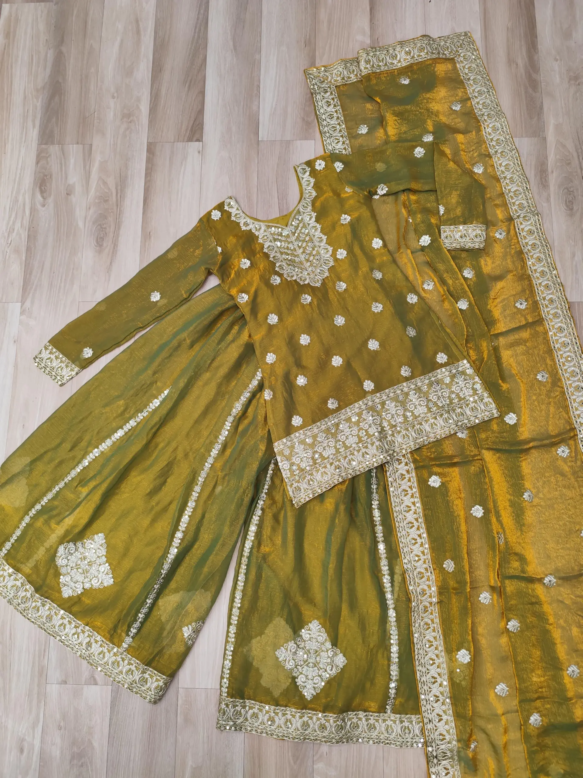 - Dupatta: Fendi Chiffon With Zari Sequins Coding Embroidered Work And Designer Lace Border