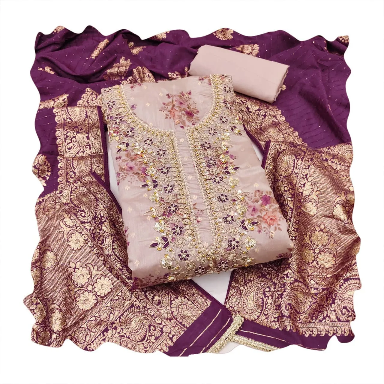 - Dupatta: Soft Chanderi Banarashi (2.15 Mit)