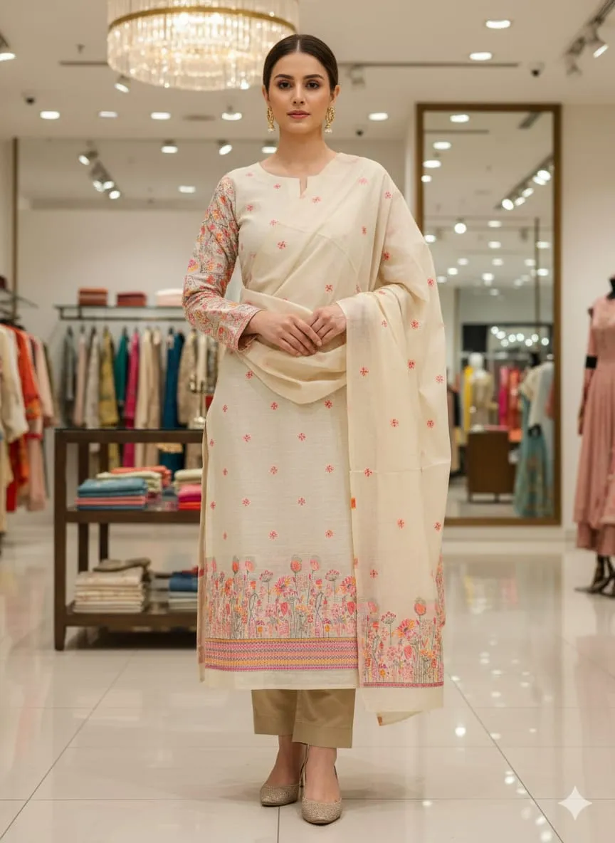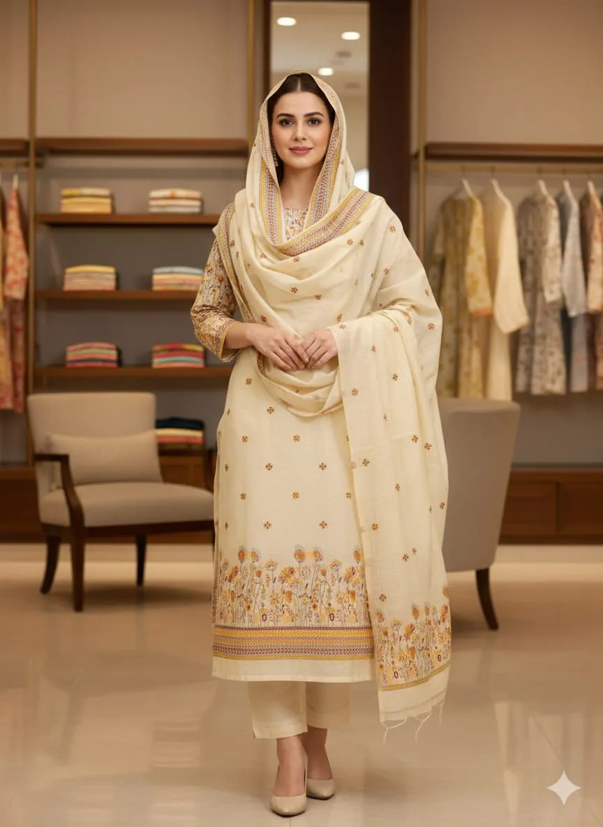 - Dupatta: Semi Jamdaani Weaving Pallu Jacquard
