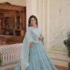 - Gown: Unique Coloured Faux Georgette With Embroidered Work