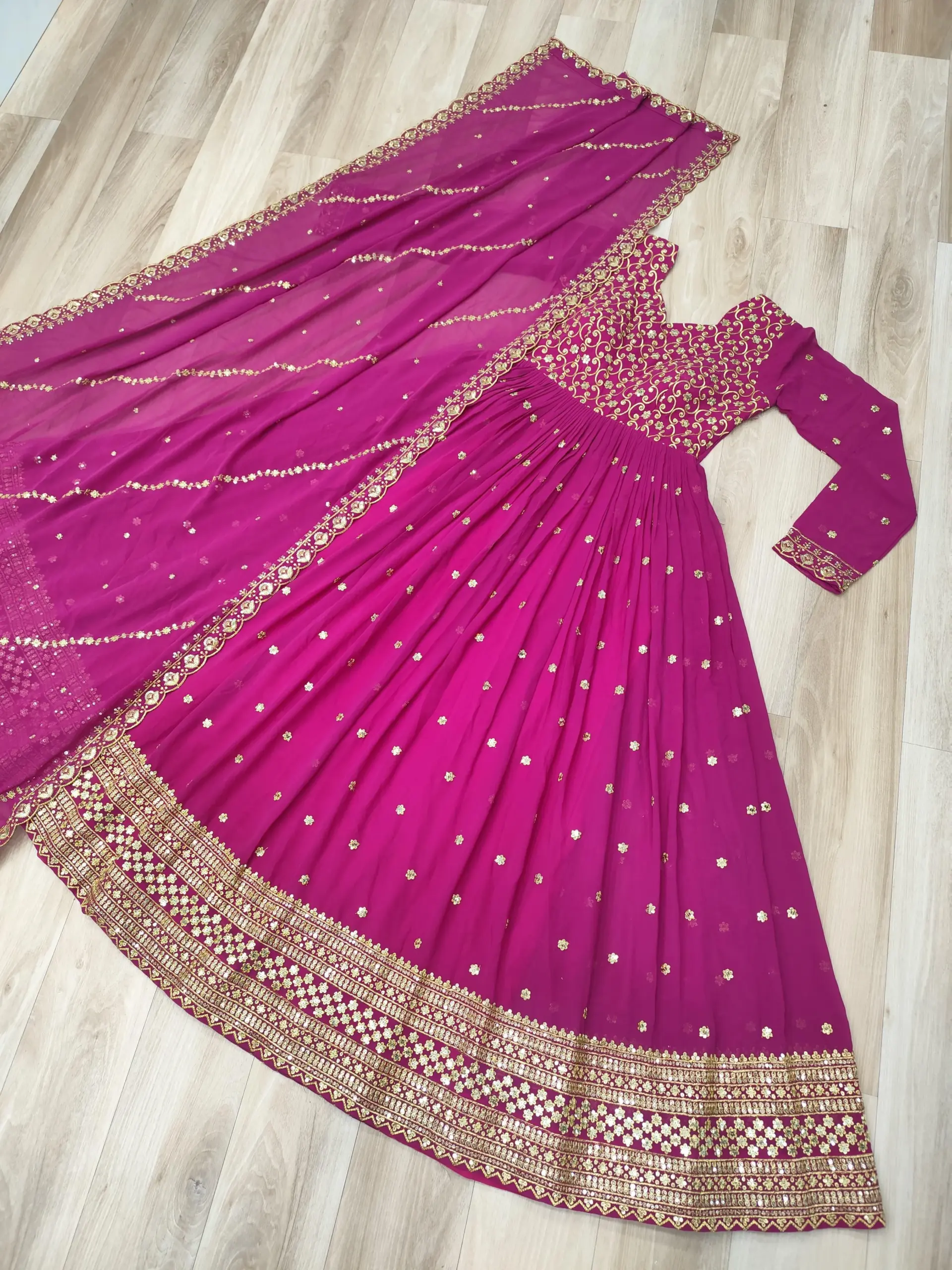 • Gown: Faux Georgette With Rich Sequins & Zari Embroidered Work