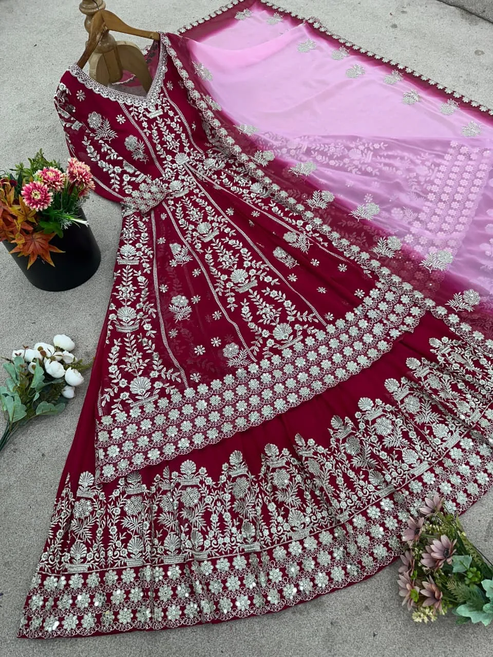 - Bottom (lehengha): Faux Georgette With Embroidery Sequence Work With Fully Flair