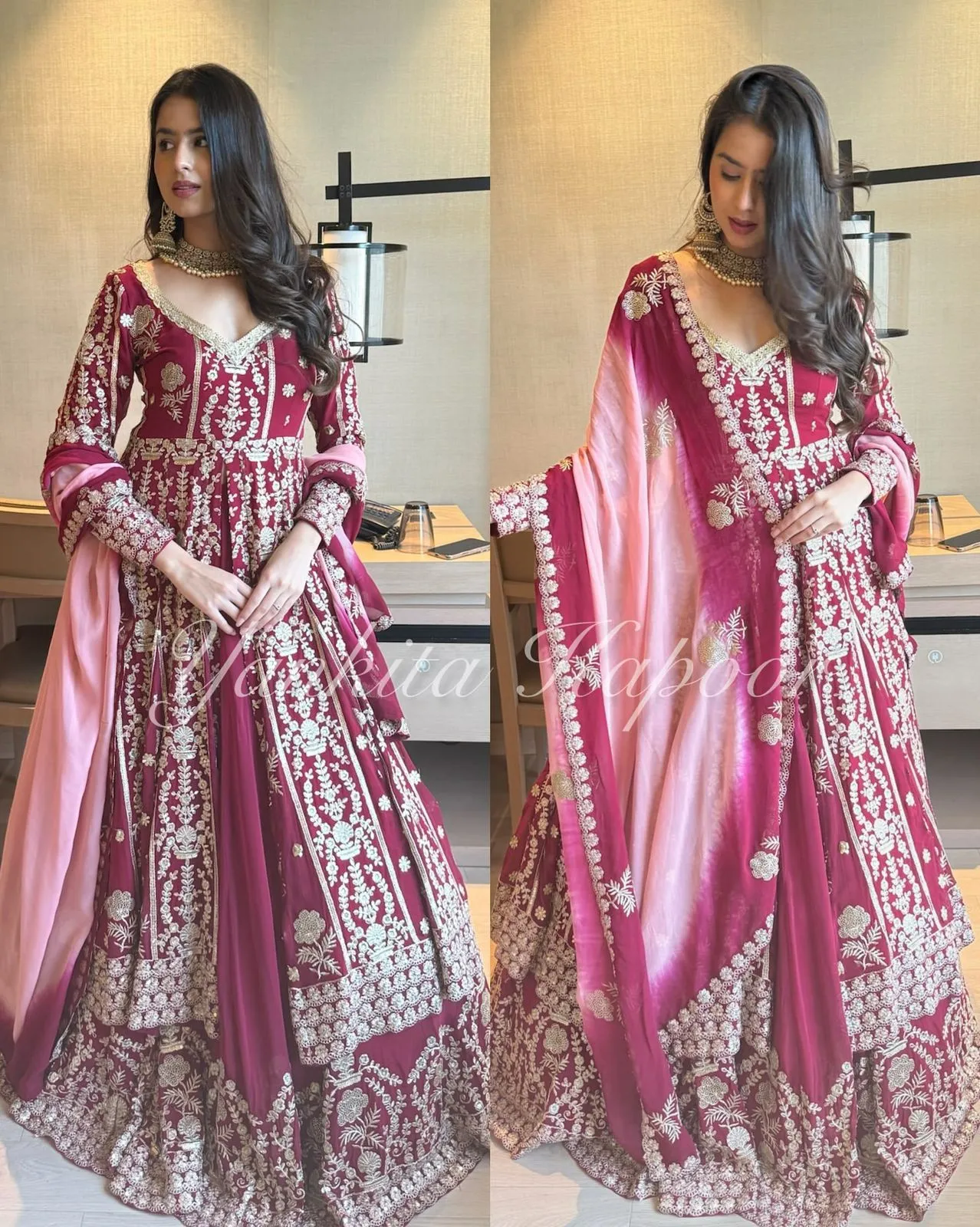 - Gown: Faux Georgette With Embroidery Sequence Work With Fully Flair