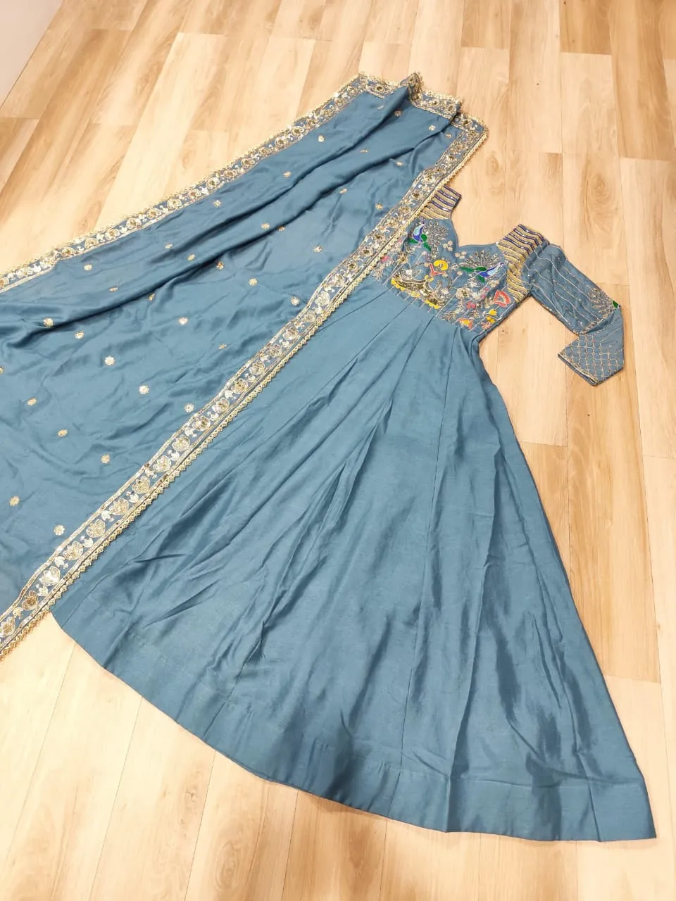 - Gown: Vichitra Silk With Rich Sequins, Multi Thread & Zari Embroidered Work
