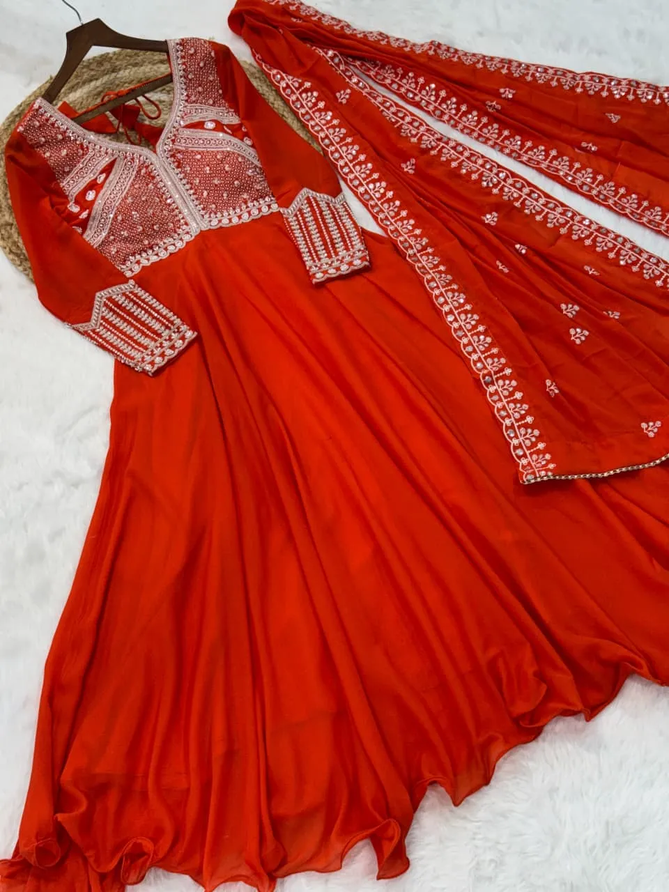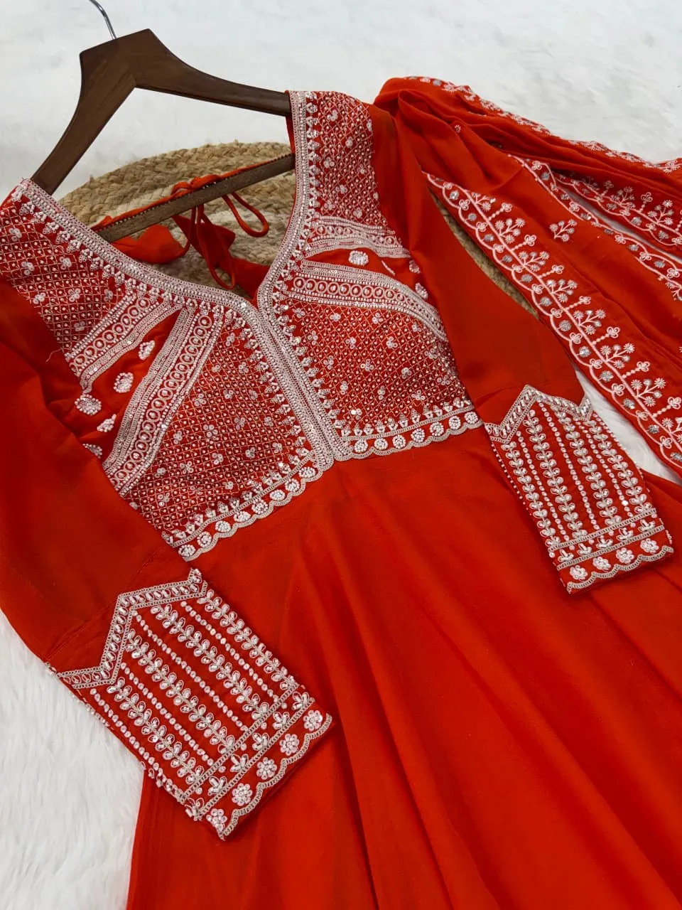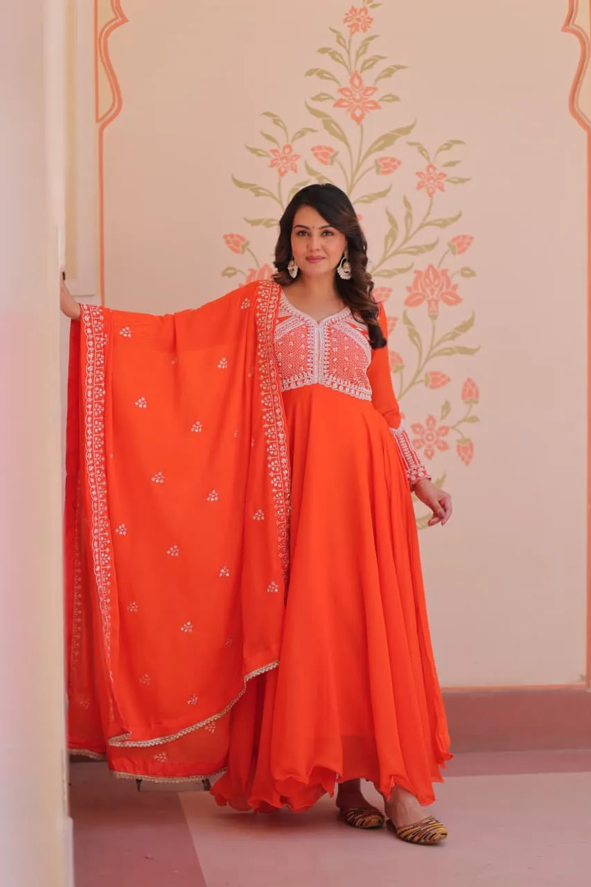 - Dupatta: Star Georgette With Zari And Sequins Embroidered Work