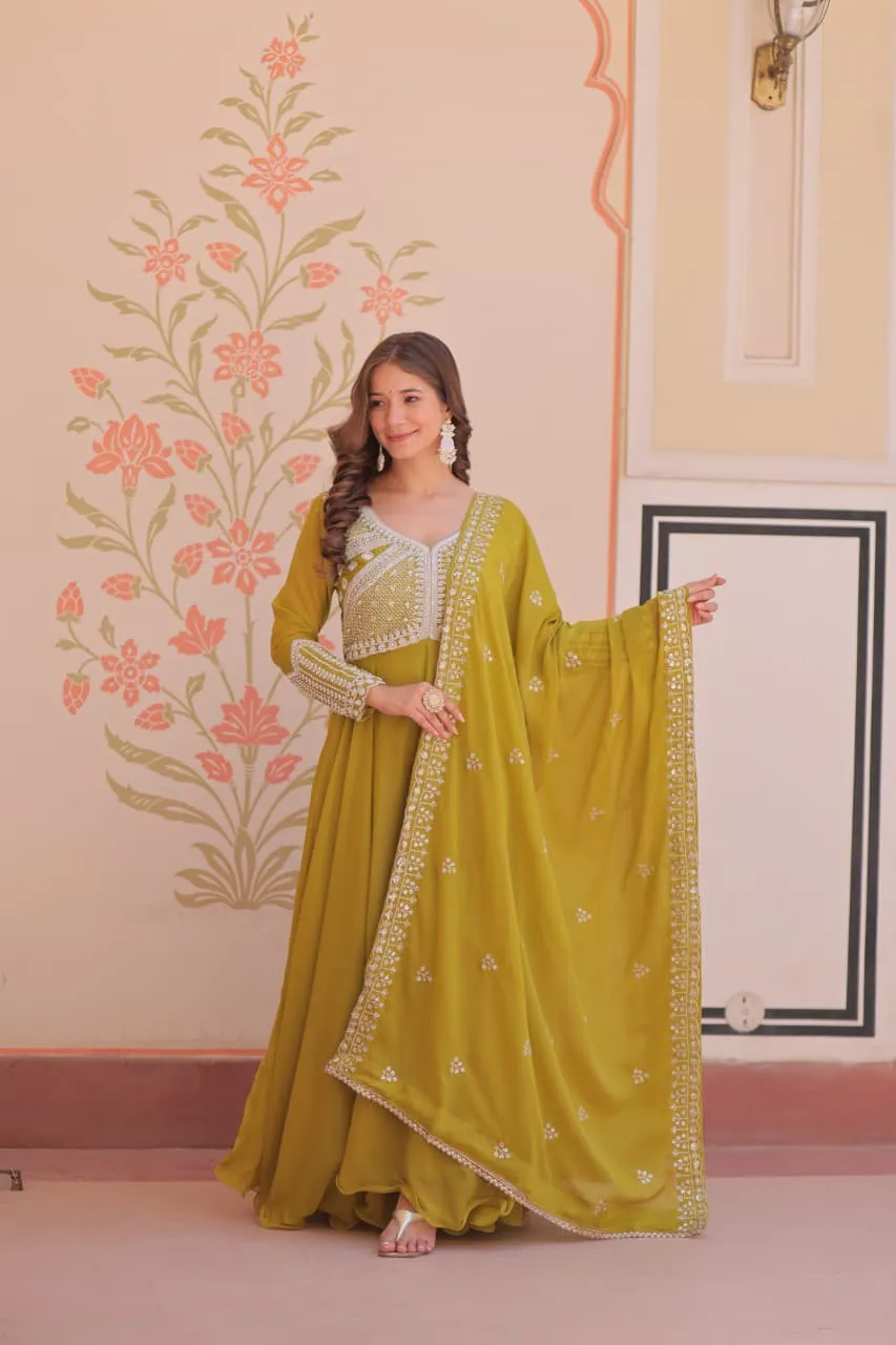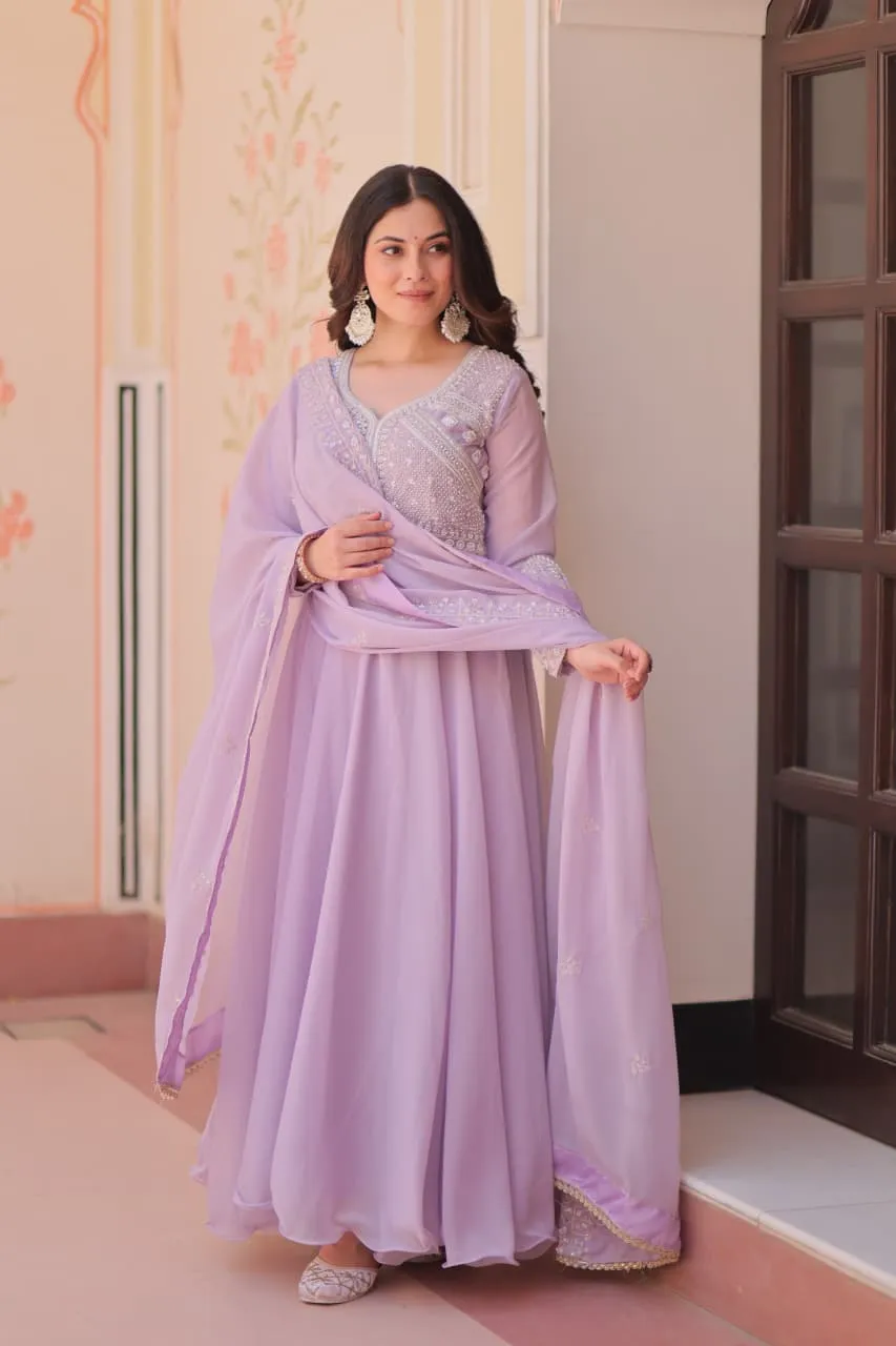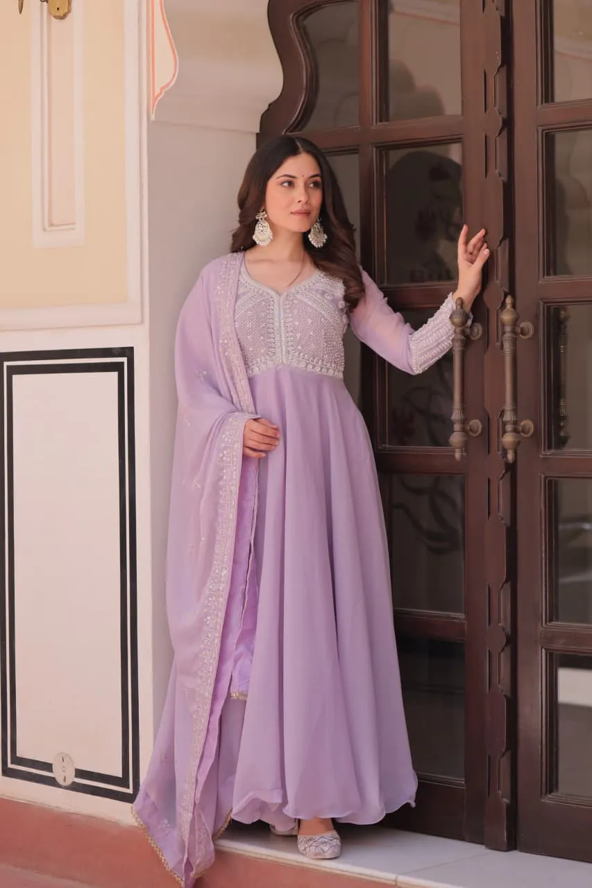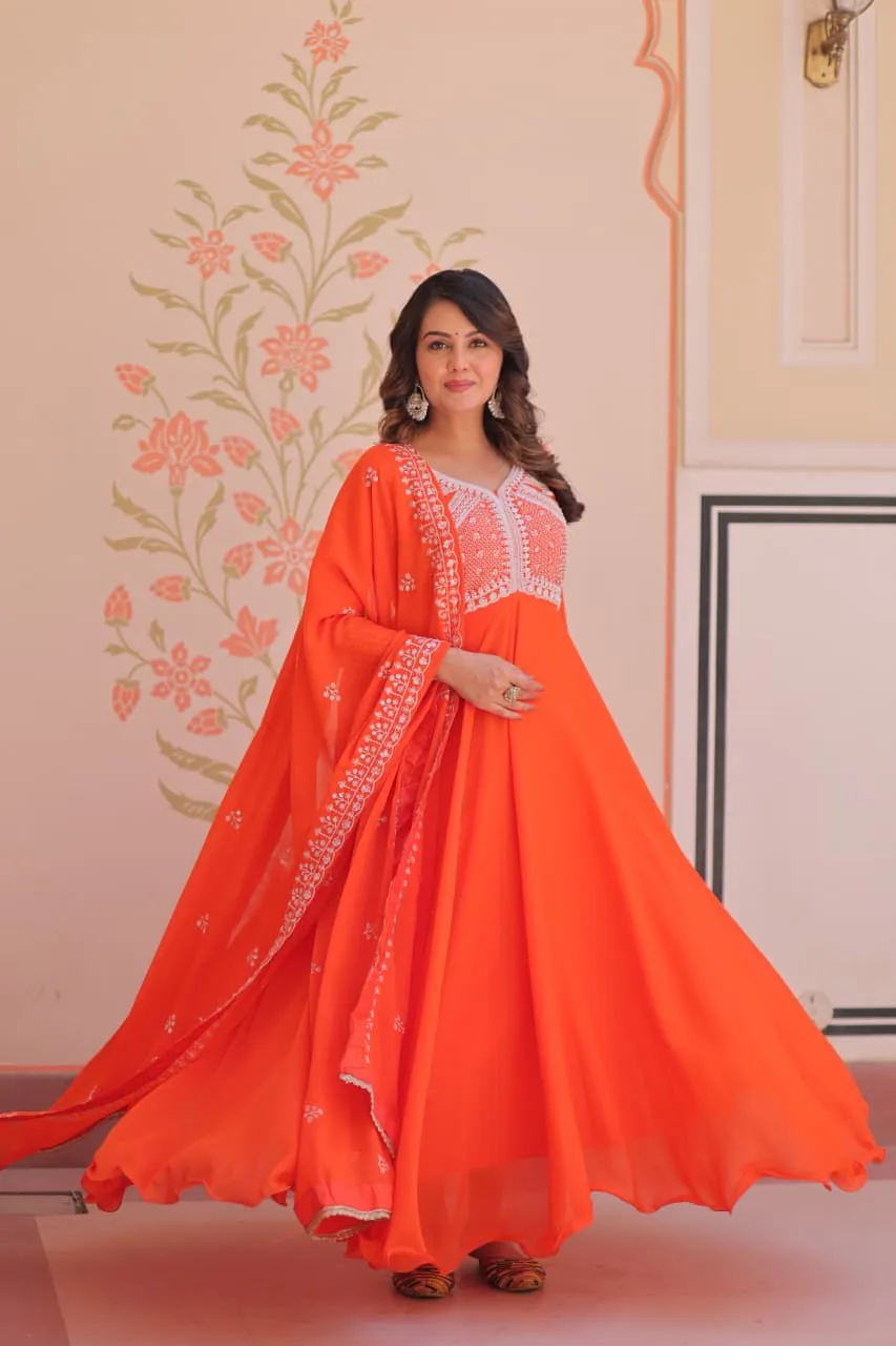 - Dupatta: Star Georgette With Zari And Sequins Embroidered Work