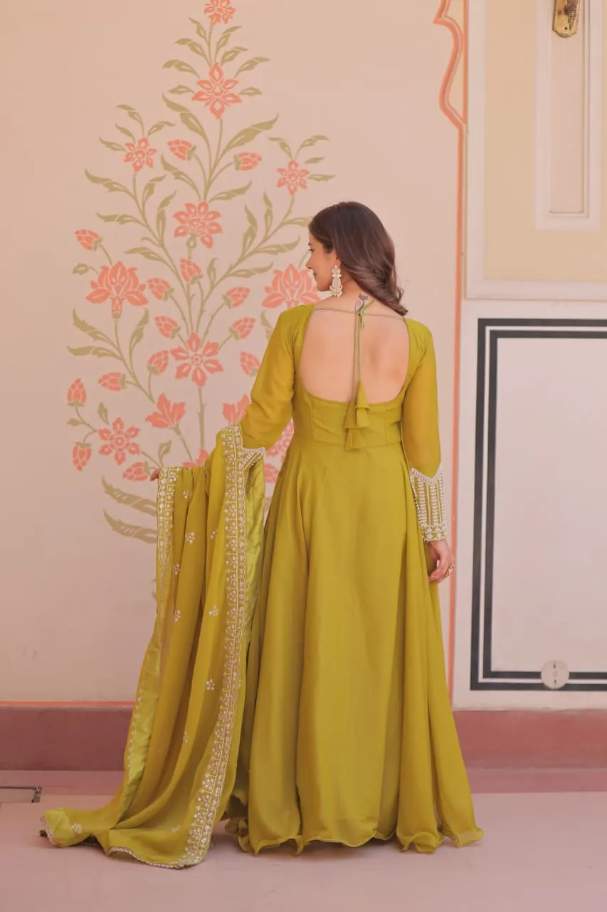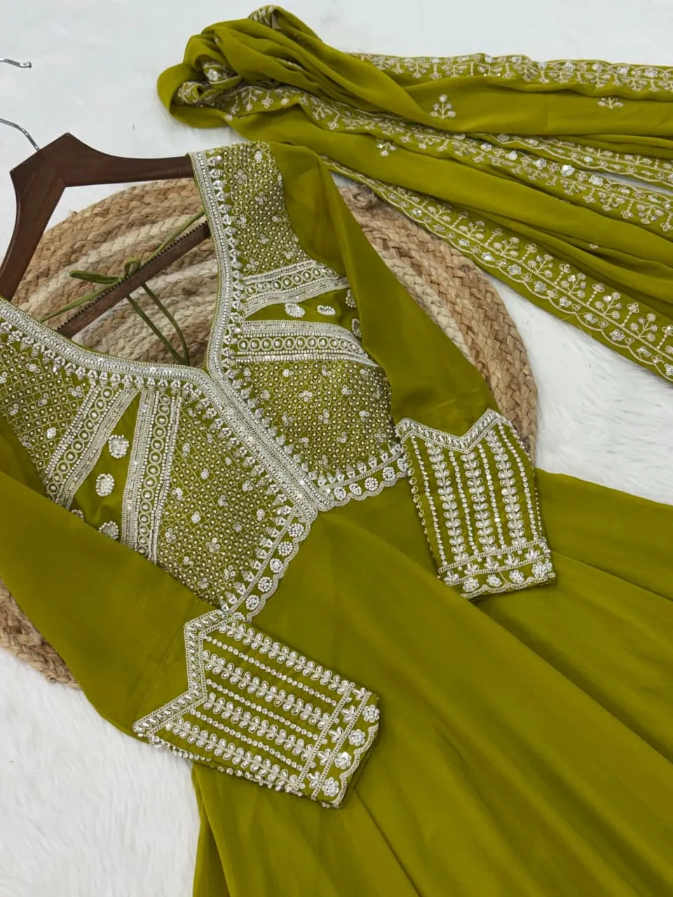 - Top: Star Georgette With Rich Sequins Coding And Beads Embroidered Work